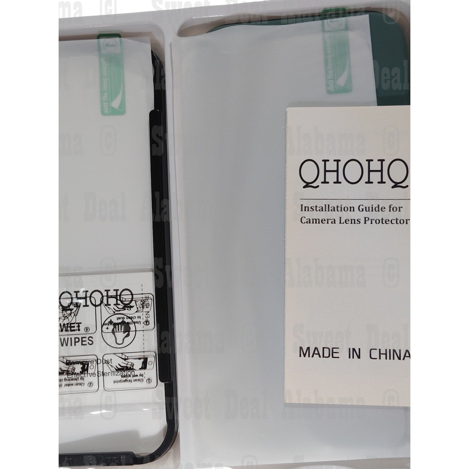 This QHOHQ Cellphone Case is designed for the iPhone 14 Pro Max and features a midnight green finish with military-grade shockproof protection. The case comes with two screen protectors, ensuring full coverage against scratches and impacts.