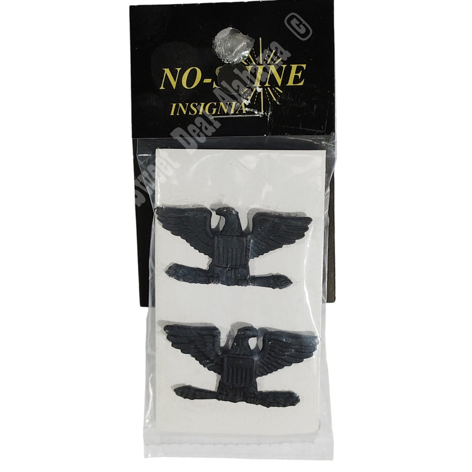 Rank Insignia Pin Set: Colonel (O-6) - Subdued Black Metal, 1-1/5"W x 3/4"H, NIP