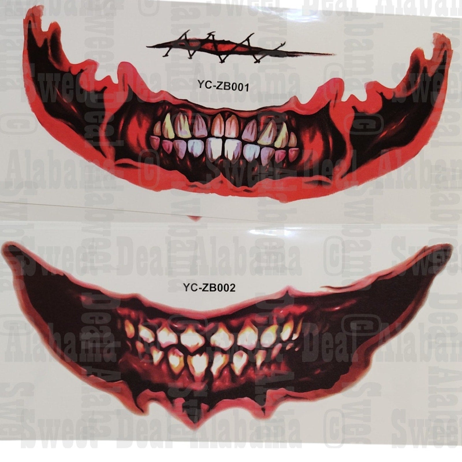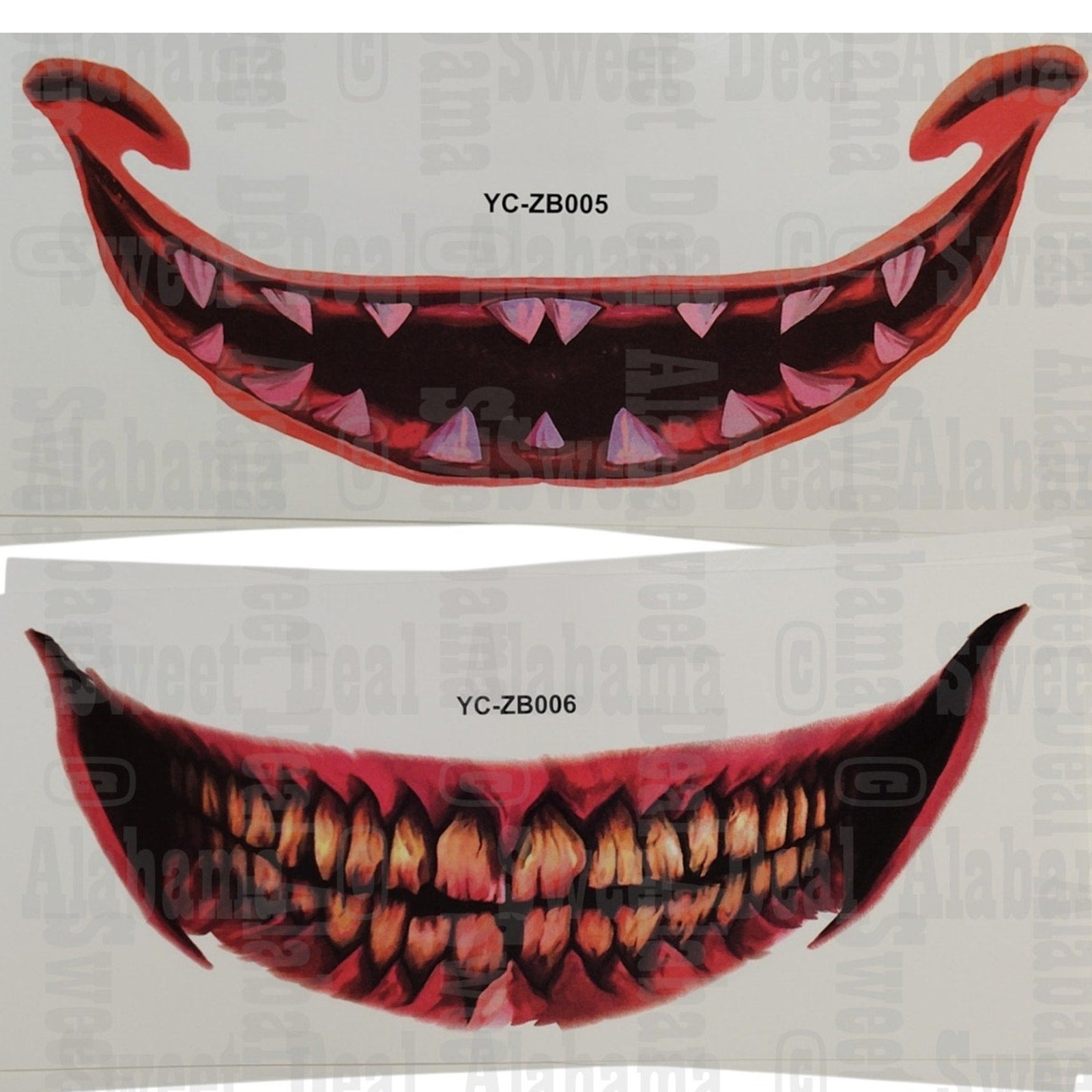 Halloween Realistic Big Mouth Tattoos – 12 Sheets, Waterproof, Punk Style