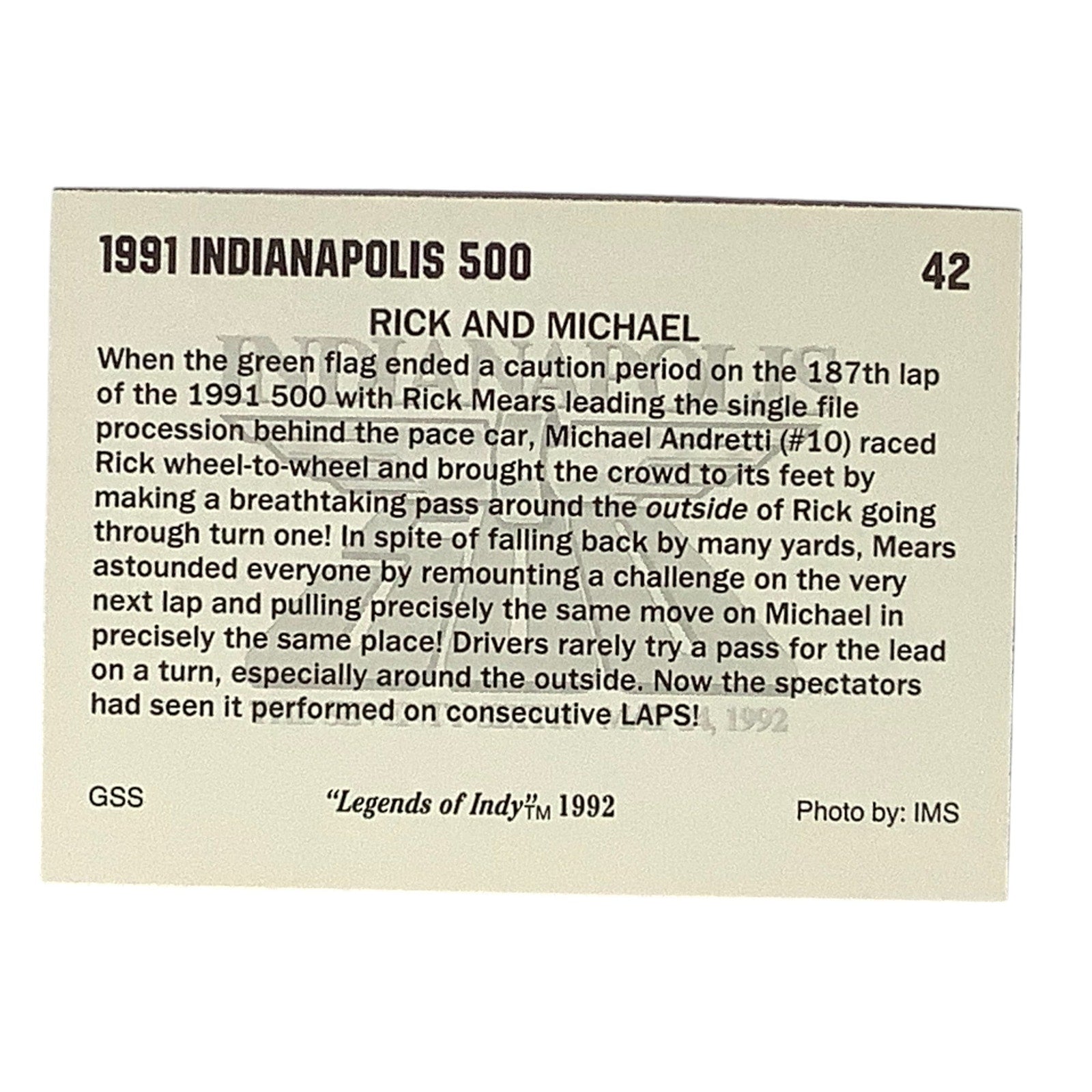 Rick Mears, Michael Andretti 1991 Race Action, 1992 Legends of Indy Card 42, NM+