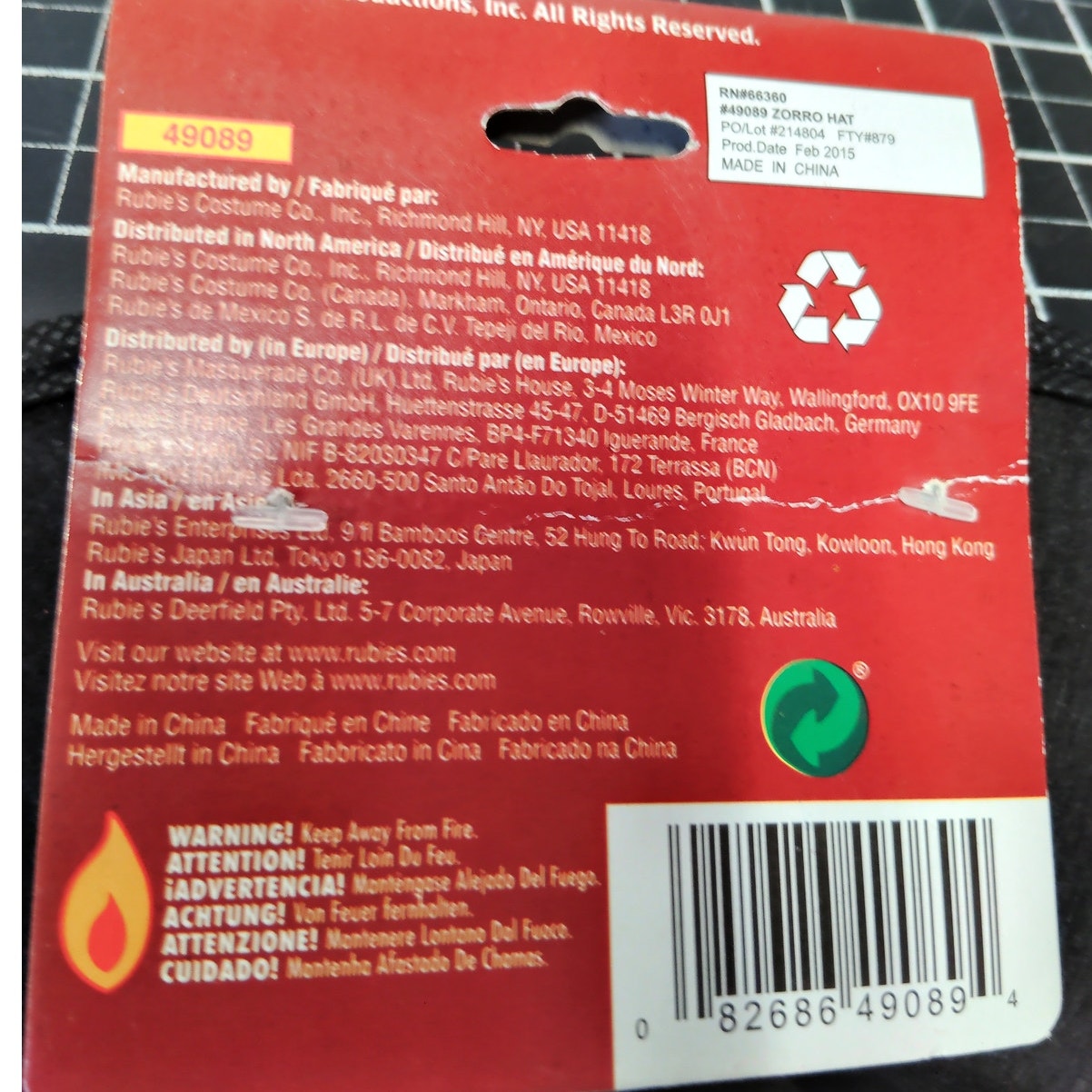 Rubie’s Costume Company Adult Zorro Hat – Black Felt with Gold Trim