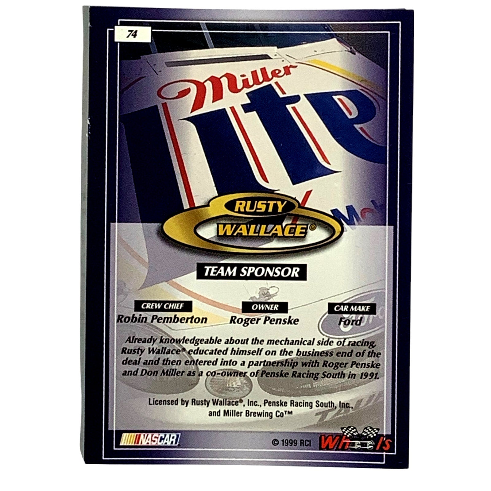 Rusty Wallace No.2, Sponsor: Miller Lite, 1999 Wheels Card No.74 NASCAR Winston Cup, NM+