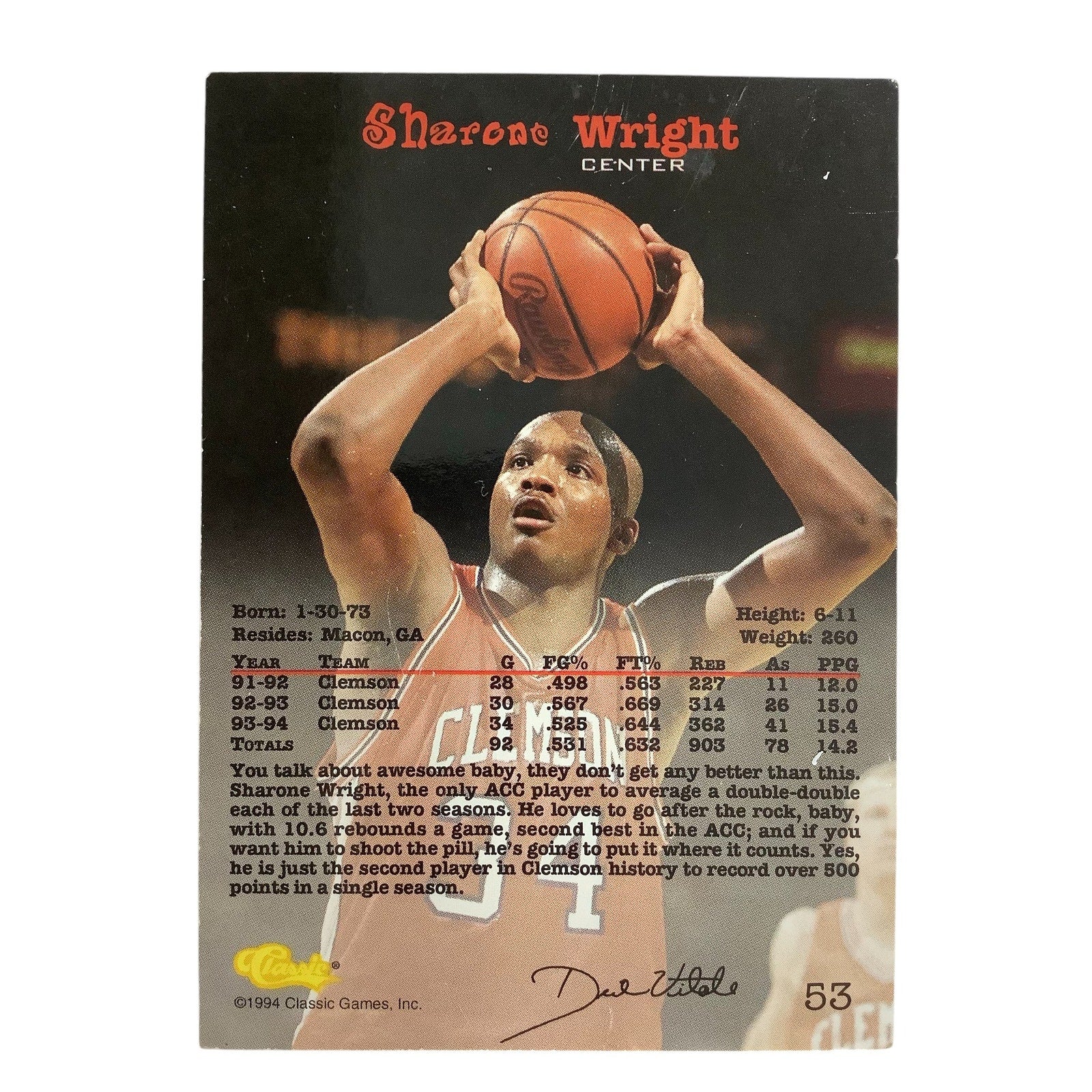 Sharone Wright, Univ. Clemson (C), Classics 1994 Draft Picks Card 53 EXC
