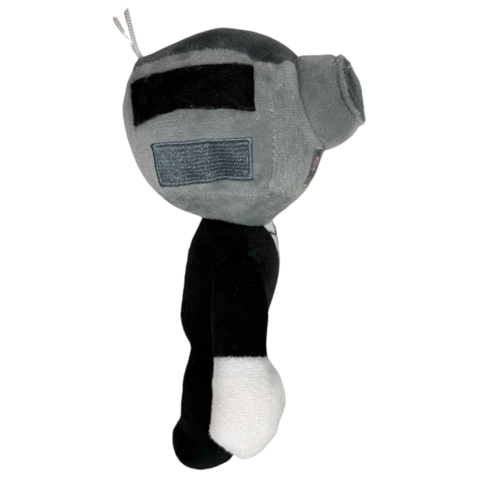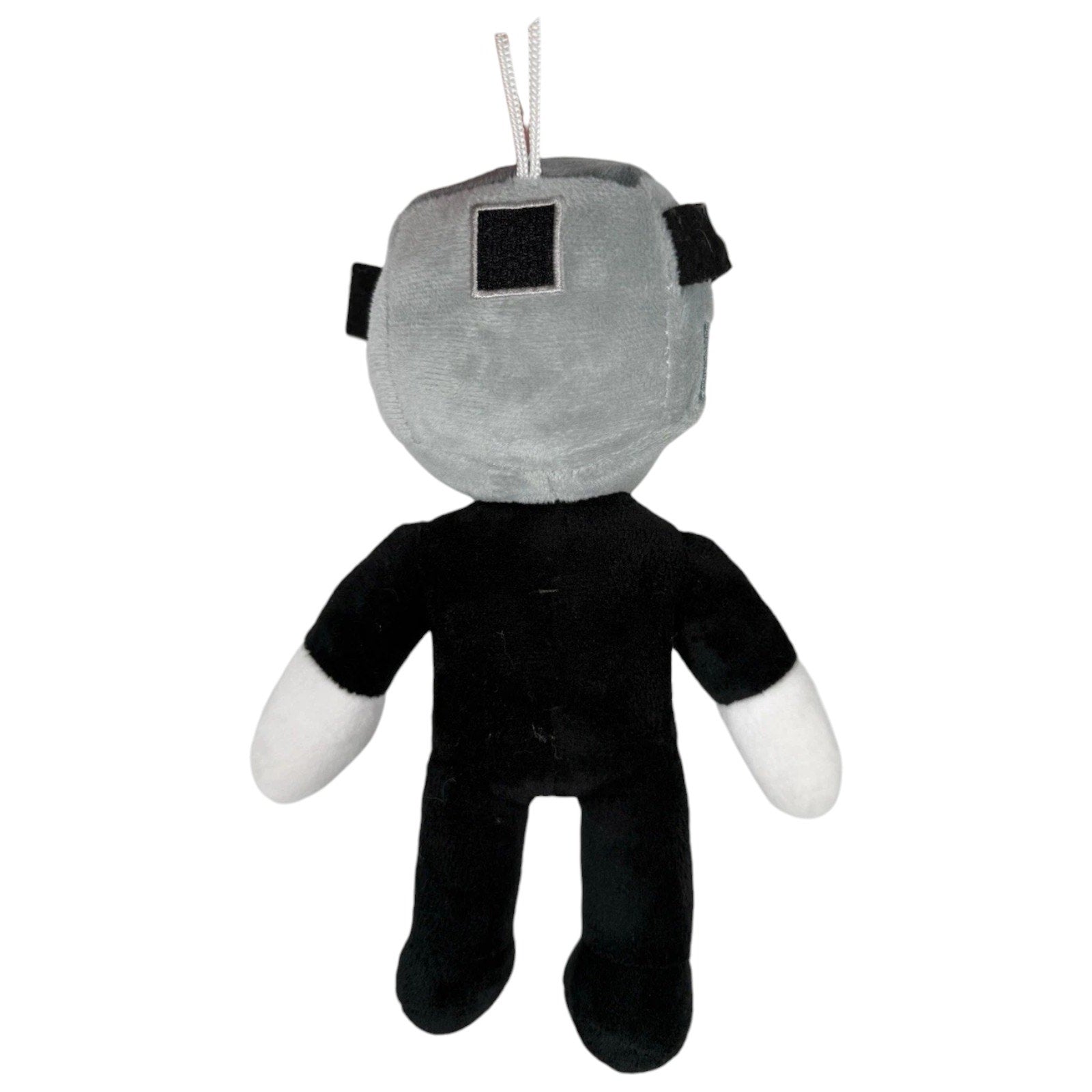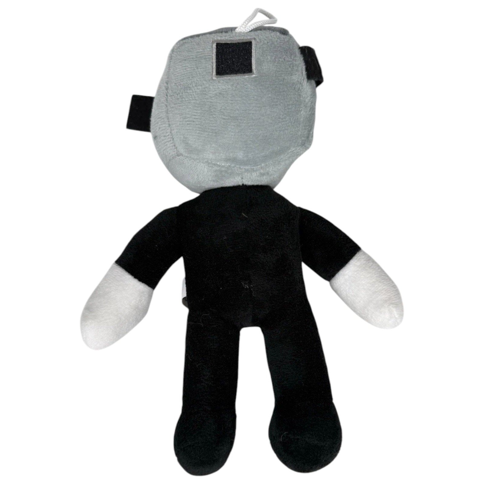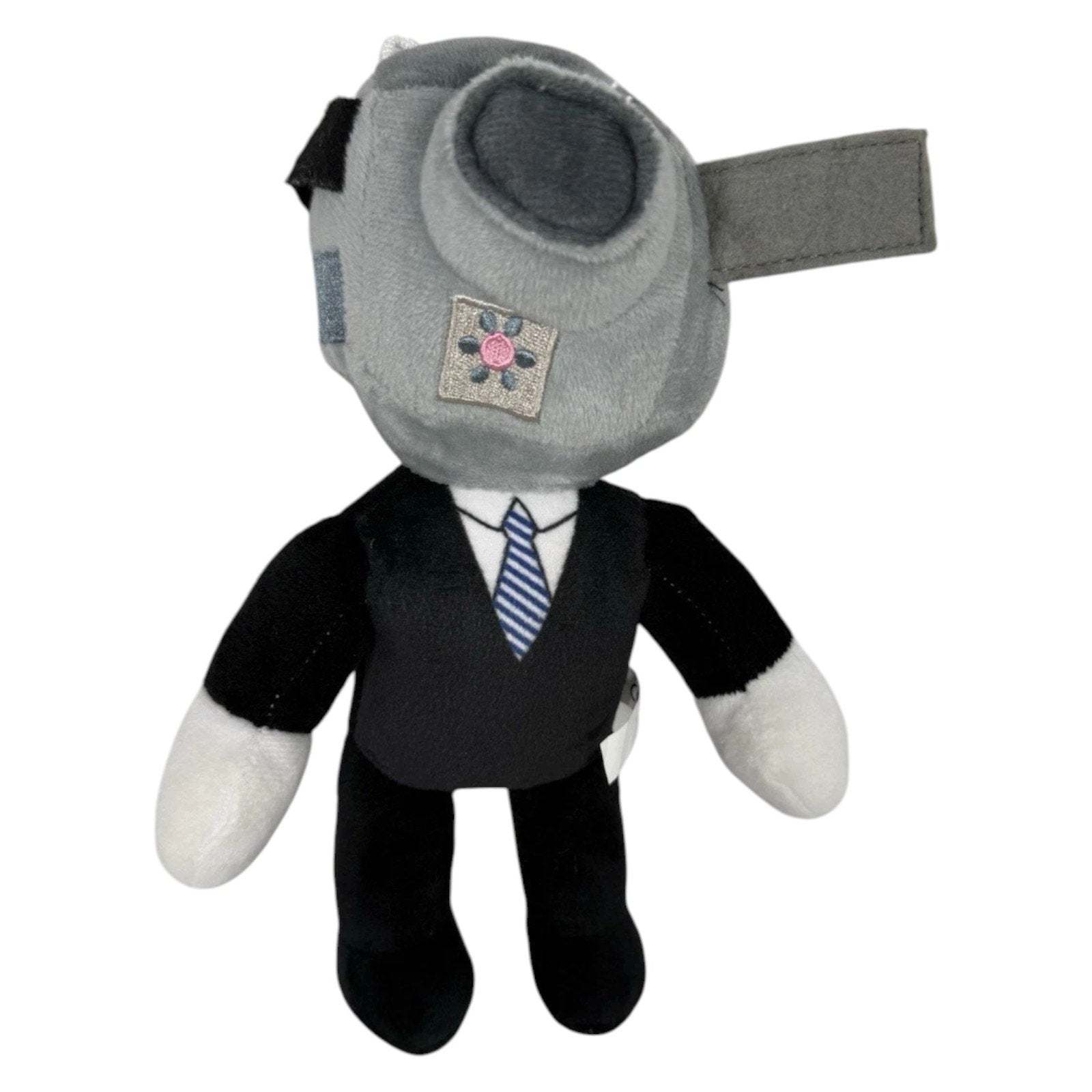 Authentic Skibidi Toilet plush toy featuring Titan TV Man, dressed in a formal black suit with white shirt and blue-striped tie. The character’s head resembles a retro television monitor with a cylindrical clock-like attachment and a screen displaying a pink-blue symbol. Inspired by the viral Skibidi Toilet horror cartoon game, this plush blends robotic design with eerie charm. Ideal for fans of the series, collectors of internet culture, or anyone seeking a unique stuffed doll. In New with Tags (NWT) condition. Approx. 25 cm tall.