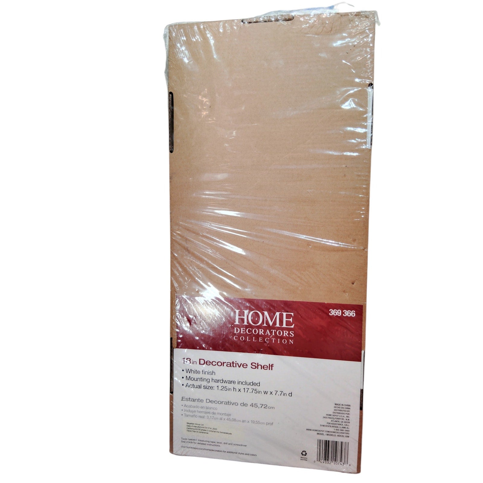 Minimalist floating shelf from Home Decorators Collection, measuring 8 inches deep by 18 inches long and 1¼ inches high. Made from premium-grade MDF with a clean white finish, this shelf offers a slim profile ideal for displaying books, photos, or decorative items. Easy to install with included mounting hardware, it blends seamlessly into modern, classic, or transitional interiors. Perfect for living rooms, bedrooms, offices, or entryways.