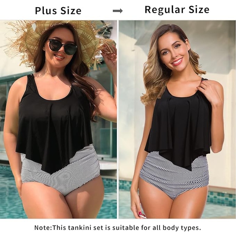 Souqfone Two Piece, Ruffled Top High Waisted Bikini Bathing Suit, 3XL (22-24)