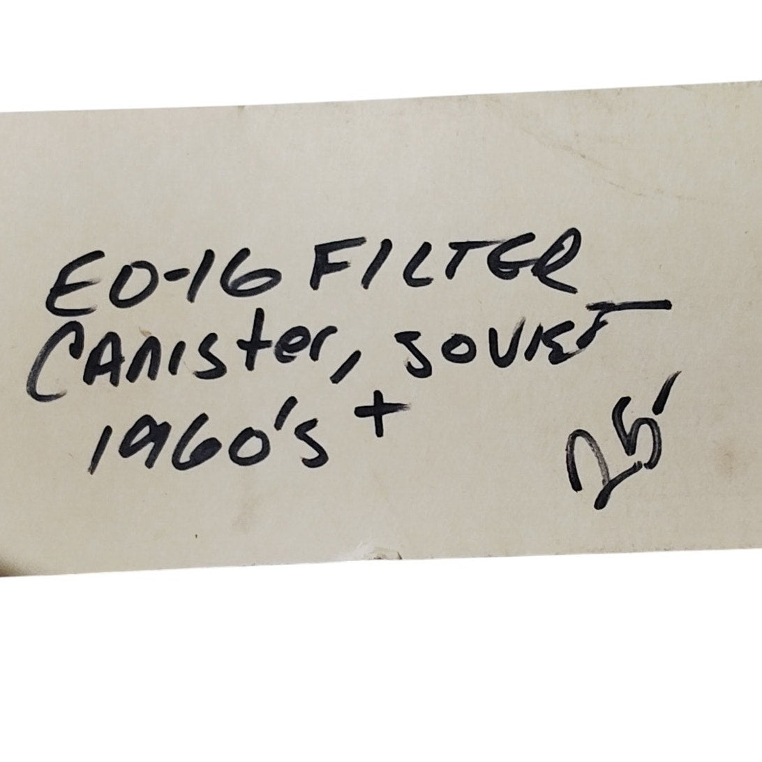 This Soviet EO-16-IV-78-10 B435 gas mask filter is a Cold War-era canister issued from the 1960s through the 1990s, commonly referred to as the “coffee can” filter due to its cylindrical shape. Measuring approximately 4¼ inches in diameter and 7 inches in height, it features 40mm GOST threading and was used with masks like the ShM-41, ShMS, and MM-1. This particular unit retains its historical markings and rugged steel construction, making it a solid addition to any Warsaw Pact NBC gear collection.