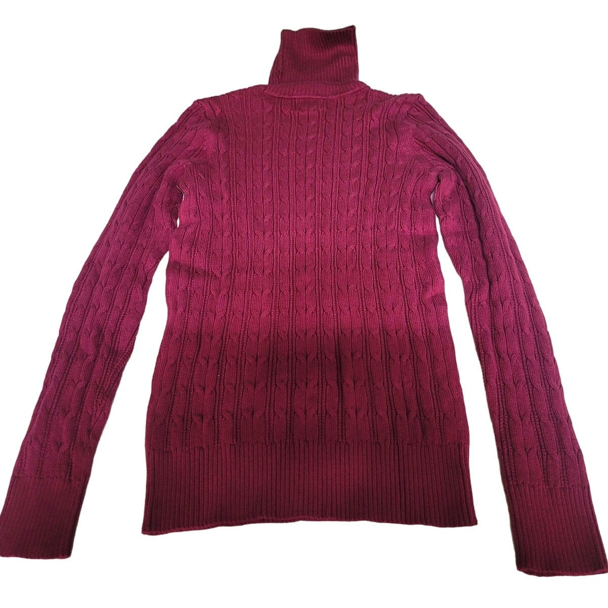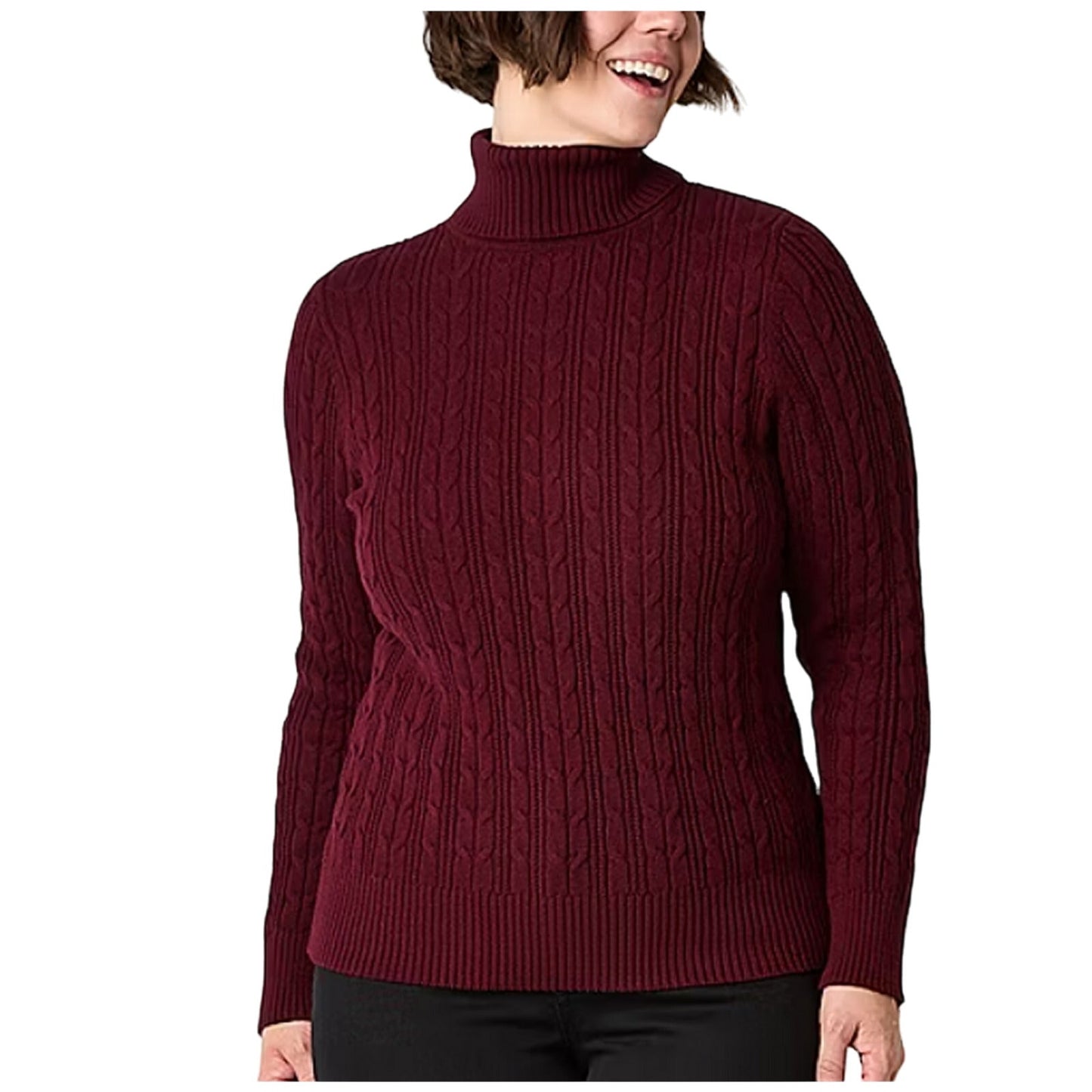 St. John's Bay Women's Turtleneck Long Sleeve Pullover Cable Knit Sweater, Deep Ruby, MT