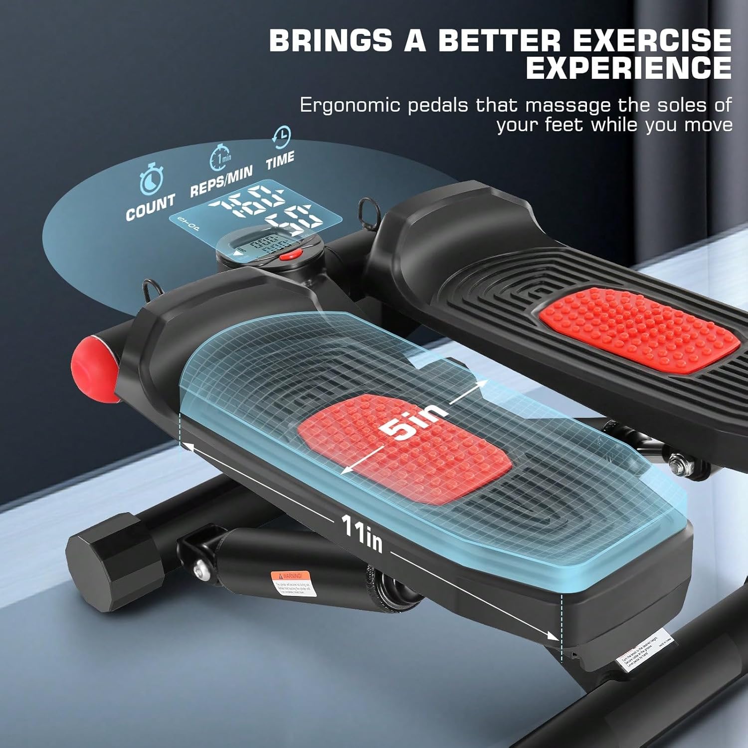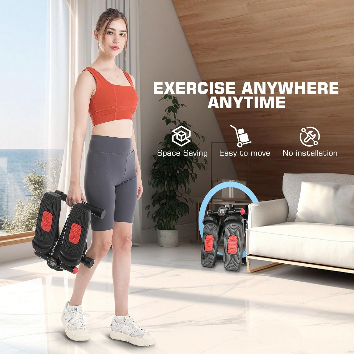 The Ancheer Mini Stepper with Resistance Bands is a compact yet powerful fitness tool designed for a full-body workout at home. Featuring hydraulic resistance technology, it delivers smooth stepping action that effectively tones legs, thighs, glutes, and core muscles. The included resistance bands add an upper-body component, allowing you to strengthen arms and shoulders while stepping. An LCD monitor tracks time, step count, and calories burned to keep you motivated and on pace.