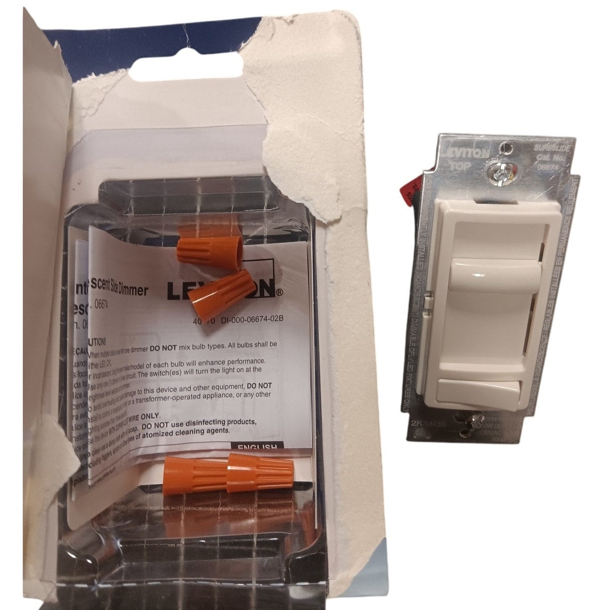 Leviton Decora 600-Watt Single-Pole/3-Way Universal Rocker Slide Dimmer, White (3-Pack, Model DSL06-3PW). Engineered for versatility and precision, this dimmer delivers smooth, full-range slide-action control that works seamlessly with dimmable LED, incandescent, and halogen bulbs. Whether used in a single-pole setup or paired with a compatible 3-way switch for multi-location control, its integrated rocker offers effortless on/off functionality while preserving your preset brightness levels.