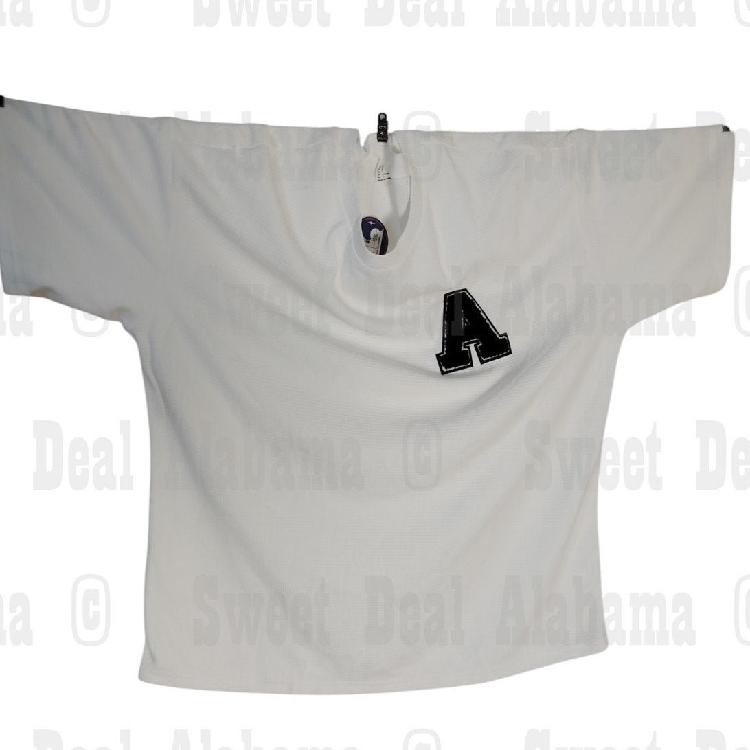 Note: This shirts left shoulder, has a tint of blue on it, I think how it was folded, the blue for the A rubbed off on the white shirt, it is very faint, it is so faint that the photo I took of it can hardly see it either.