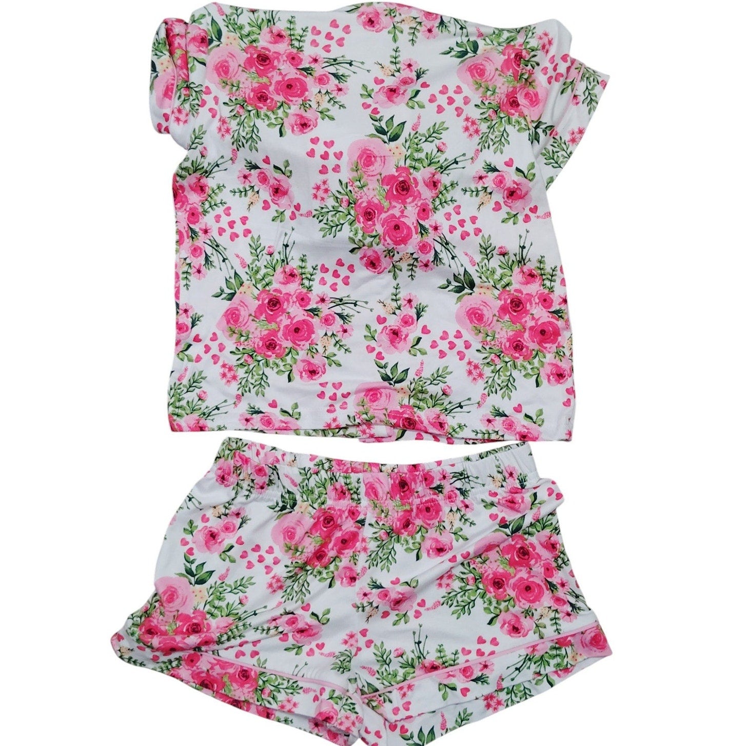 Tahari Girl’s 2-Piece Pajama Set w/ Free Matching Hair Scrunchie – Size 5/6 – Bright White