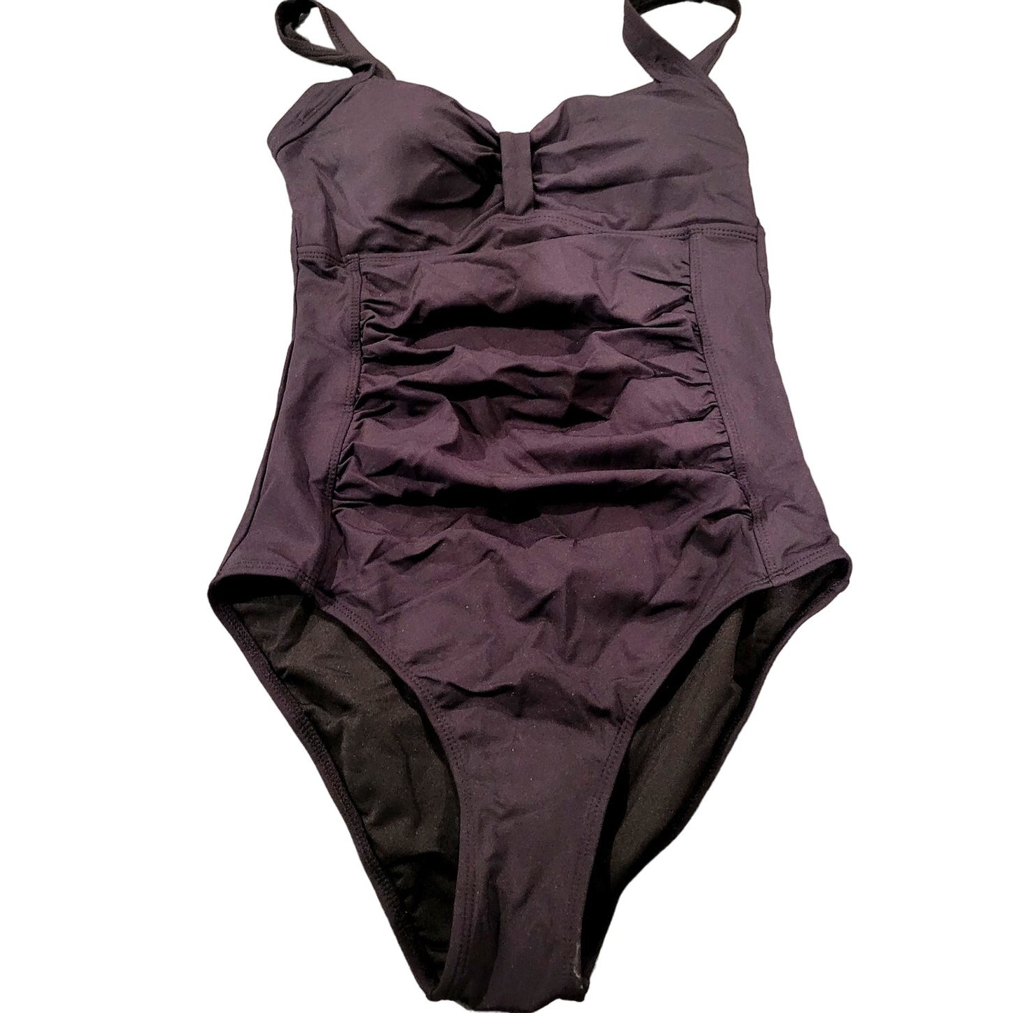 Tempt Me Women Black Ruched Slimming One Piece, Tummy Control Vintage S (4-6)