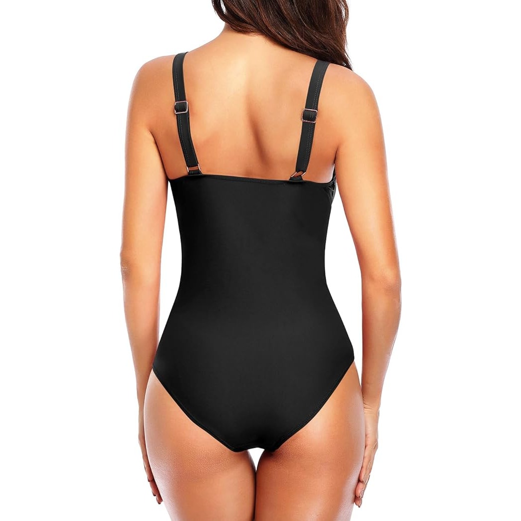 The long torso of the swimsuit has a ruched shirred pattern that has a tummy control effect. This design accentuates your curves and hides any imperfections perfectly while still being flattering.
