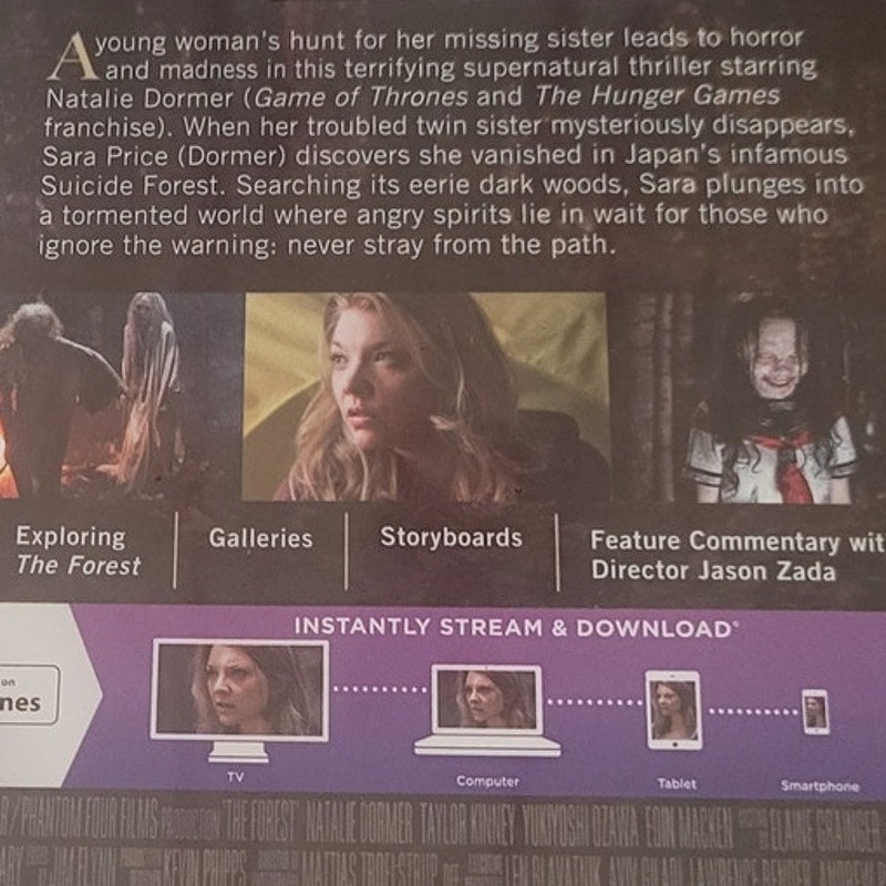Enter the terrifying world of The Forest, a supernatural thriller set in Japan’s infamous Aokigahara Forest. Natalie Dormer stars as Sara, who ventures into the dense woods searching for her missing twin sister. Guided by a stranger, she soon discovers the forest is filled with restless spirits and deadly secrets. Blending suspense, mystery, and psychological horror, this chilling film delivers atmospheric scares and haunting visuals. Presented in Blu-ray, this edition includes sharp picture quality, immersive sound, and bonus features including featurettes and behind-the-scenes content.
