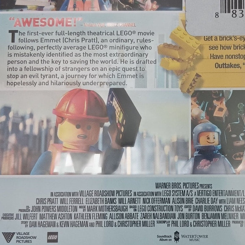 The Lego Movie is a 2014 animated adventure comedy that follows Emmet, an ordinary LEGO figure mistakenly identified as the key to saving the world. Featuring the voices of Chris Pratt, Elizabeth Banks, Will Arnett, and Morgan Freeman, this fast-paced, family-friendly film delivers humor, heart, and stunning animation. Directed by Phil Lord and Christopher Miller. Condition: New in package (NIP), factory sealed.