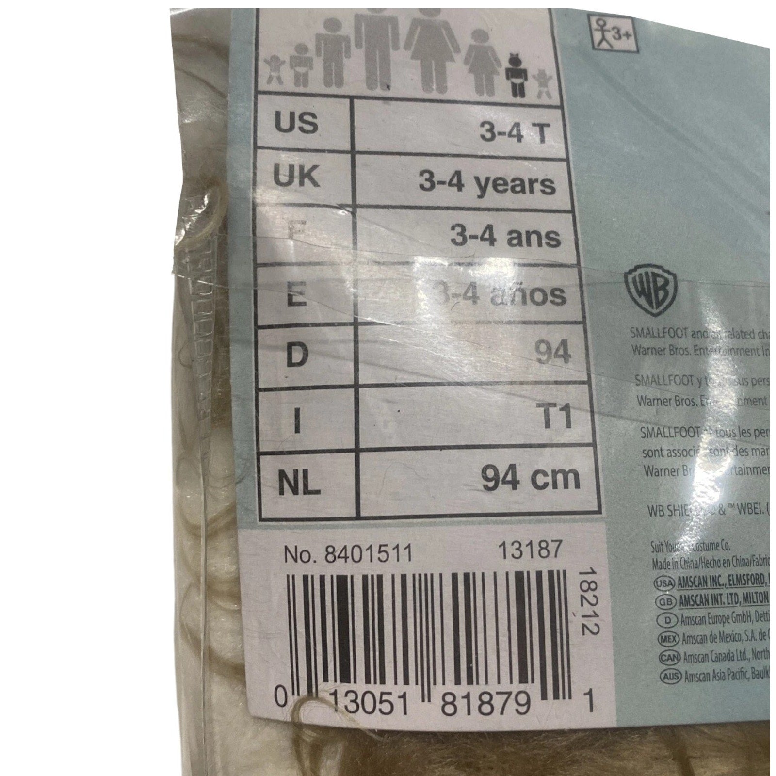 Officially licensed Smallfoot movie costume featuring the character Cali. Includes a cozy white jumpsuit and six detailed accessories to complete the abominable snowman look. Designed for toddlers ages 3T–4T. Ideal for Halloween, cosplay, or themed school events.