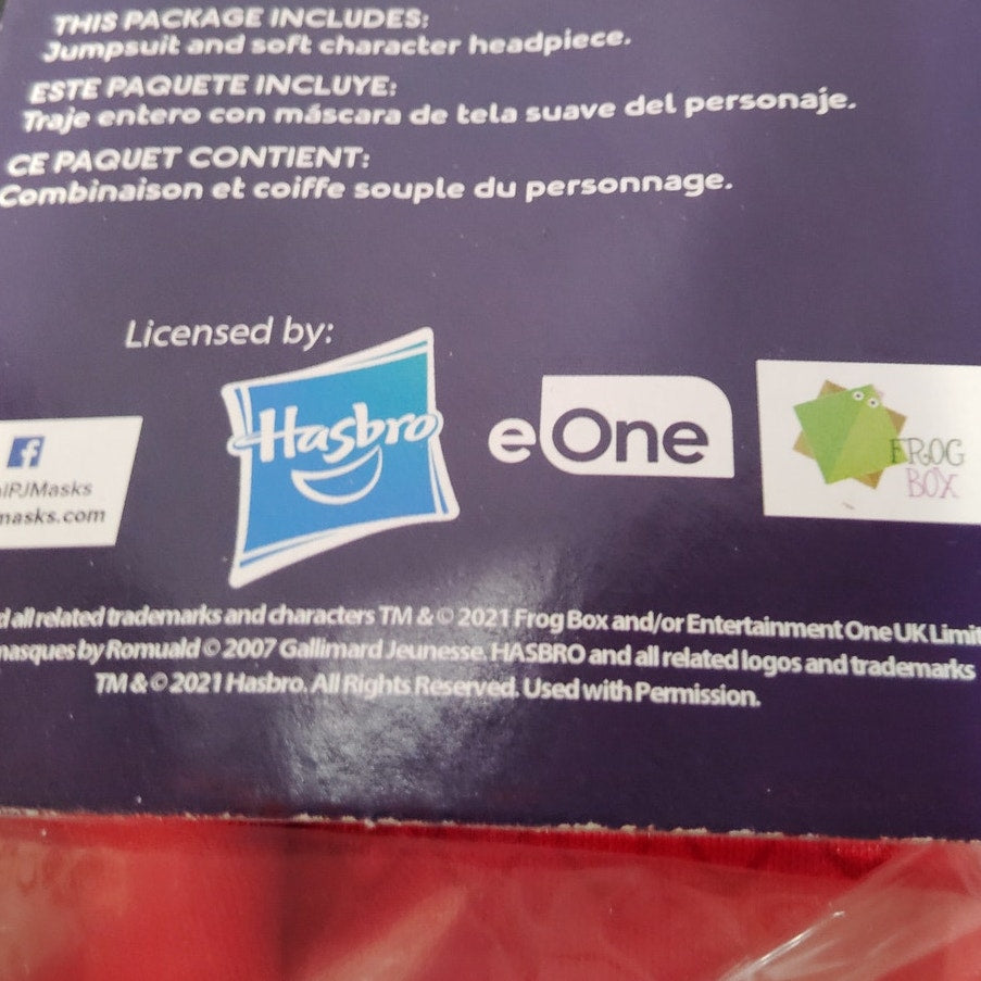 Official PJ Masks Owlette toddler costume. This child-size Medium (3T/4T) outfit includes jumpsuit, cape, and character mask for a complete superhero look. Licensed PJ Masks product, perfect for Halloween, birthday parties, or dress-up play. New in original packaging with UPC 039897206950.