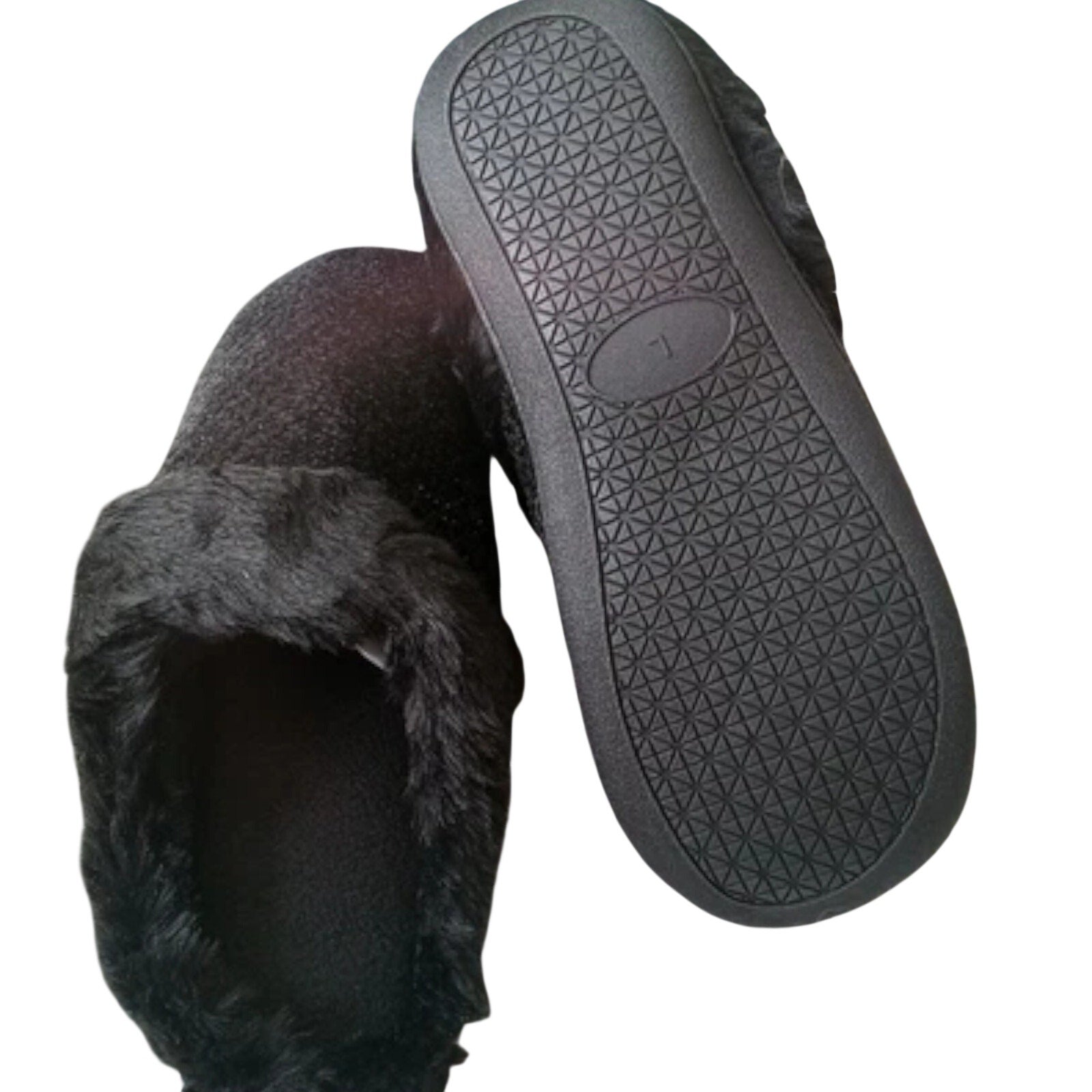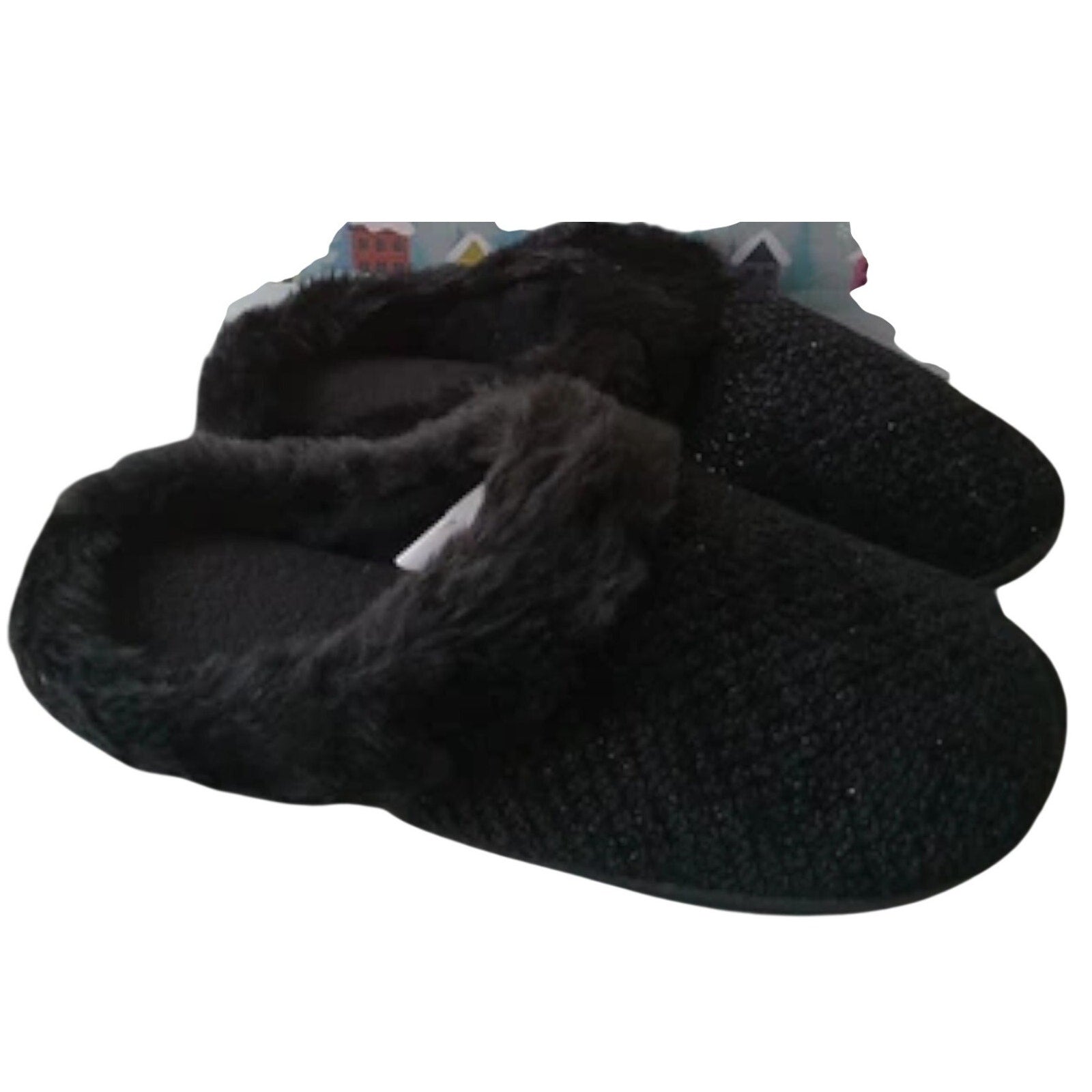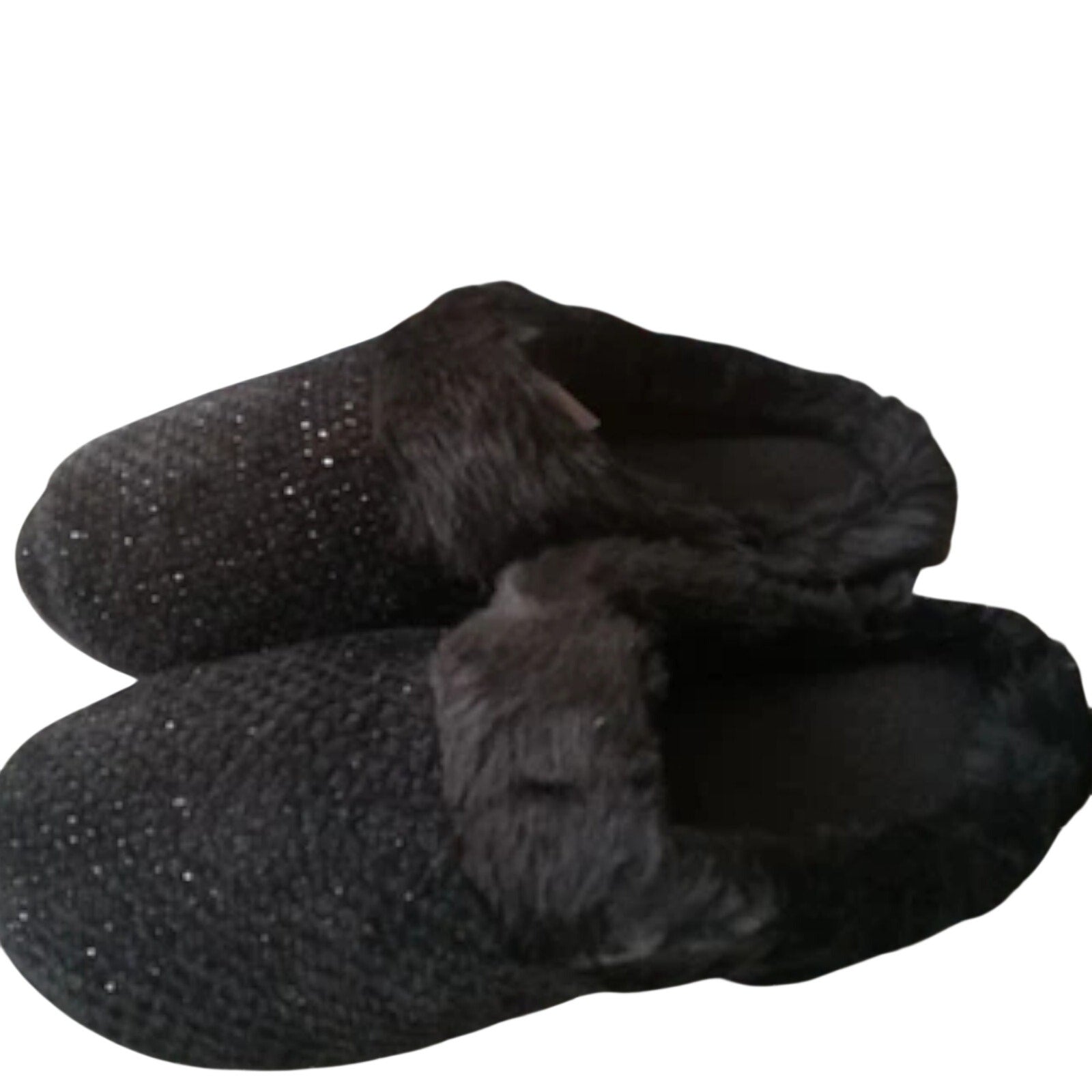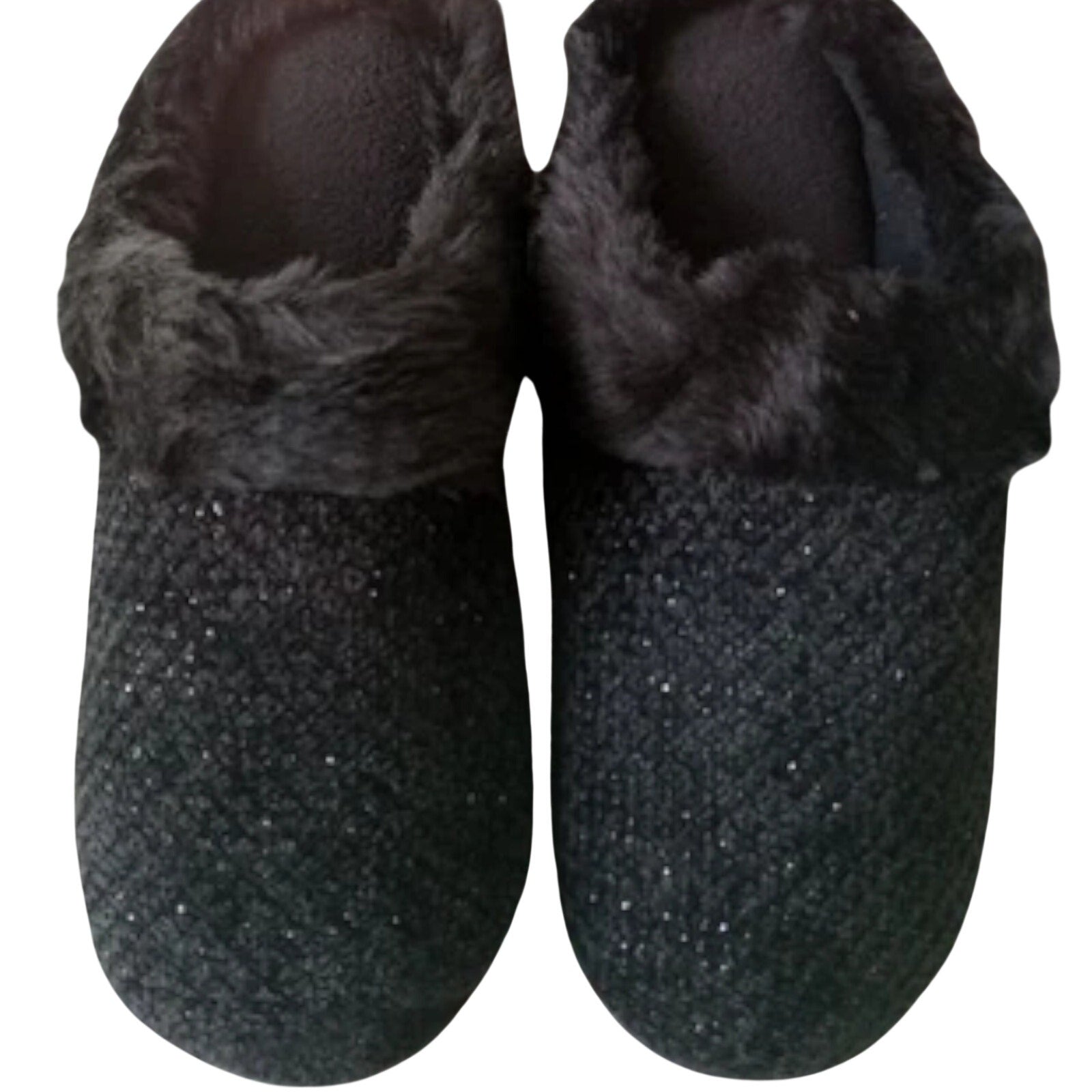 Totes Women’s Large 8‑9 Black Sparkle Faux Fur Memory Foam Slippers