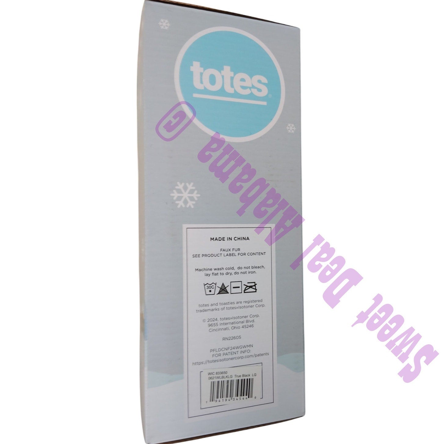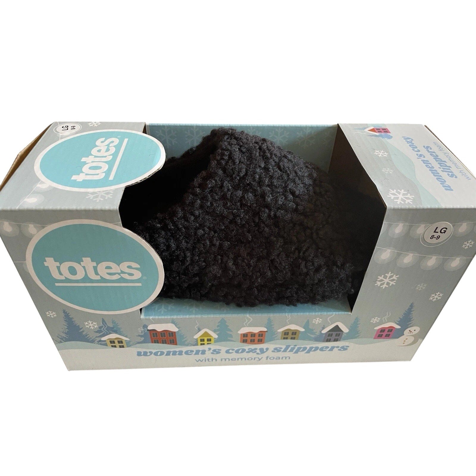 The Totes Women's Cozy Slippers in size Large (8-9) are designed for comfort and warmth. These slippers feature a soft black faux fur upper, offering a luxurious and cozy feel. The memory foam insoles provide excellent cushioning and support, ensuring all-day comfort. With a slip-on design, they are easy to wear and perfect for casual indoor use. Their durable construction and stylish appearance make them a great choice for relaxation and lounging.