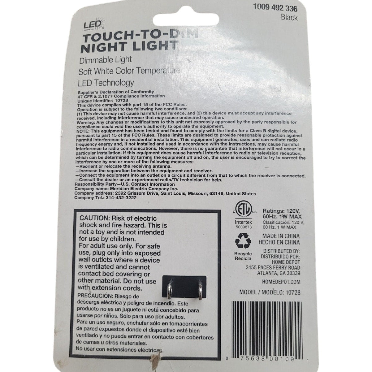 Touch to Dim Dimmable Soft White Plug-In LED Black Night Light
