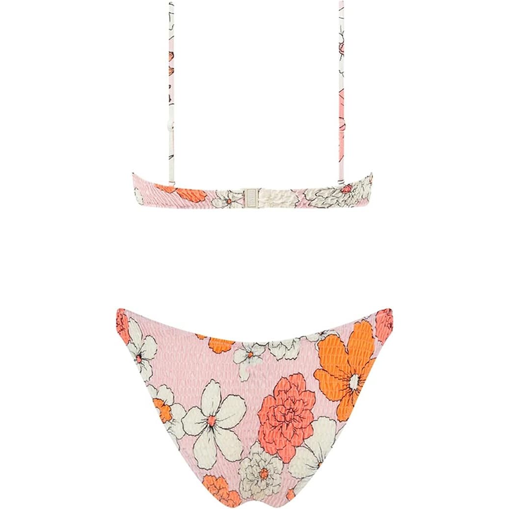 Triangle Bikini Smocked Textured Scoop Frilled Print Ruched Elastic Swimsuit, S (2)