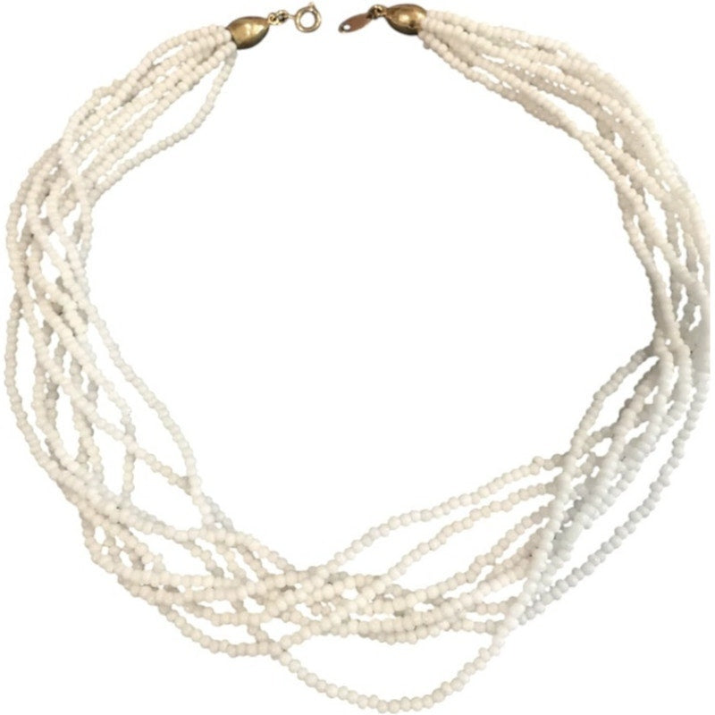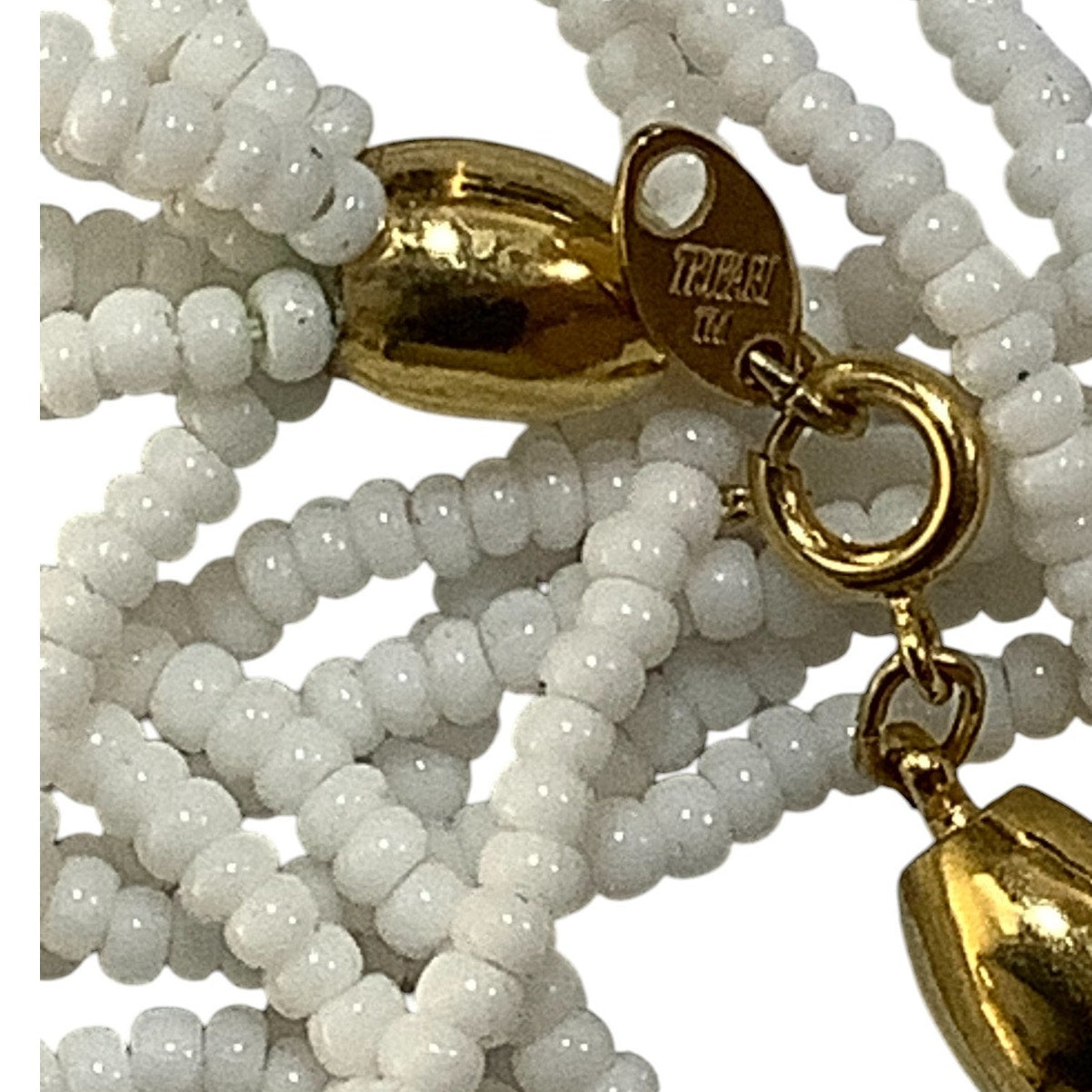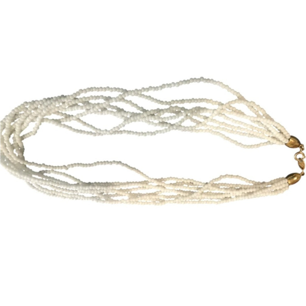 Trifari 8-Strand Glass Seed Bead Necklace, Gold-Tone Ends/Clasp - Vintage 1970s
