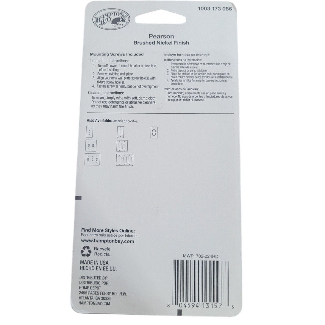 These covers are a stylish, functional upgrade for your wall-mounted light switches. Designed by Hampton Bay in the Pearson style, they feature a brushed nickel finish.