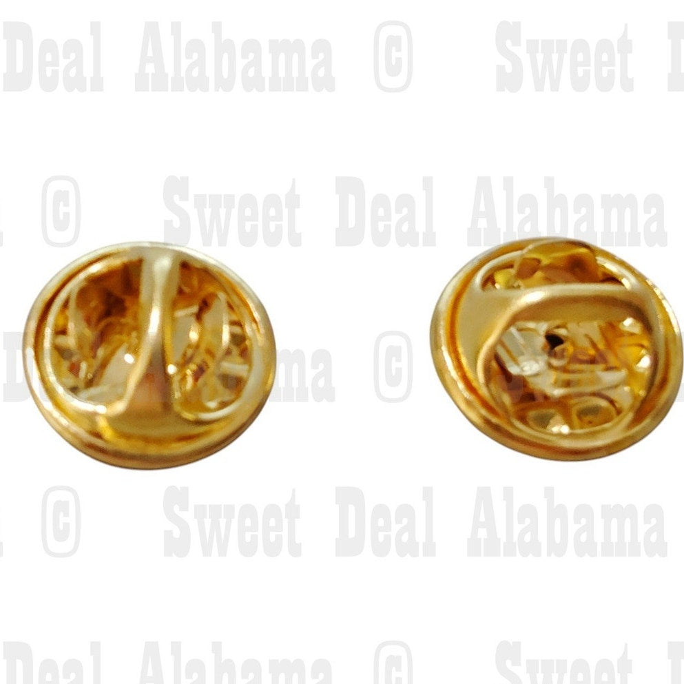 Includes butterfly clutchback(s) for secure fastening. The butterfly clutch is a small, metal clasp that grips the pin’s post, ensuring it stays in place on hats, jackets, or bags. This design allows for easy attachment and removal while keeping the pin firmly secured.