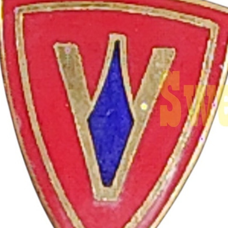 The USMC 5th Marine Division Pin is a collector’s item honoring the 5th Marine Division of the United States Marine Corps. Measuring 1 inch in height by 7/8 inch in width, this pin features a red diamond background with a yellow number "5" in the center, representing the division’s insignia.