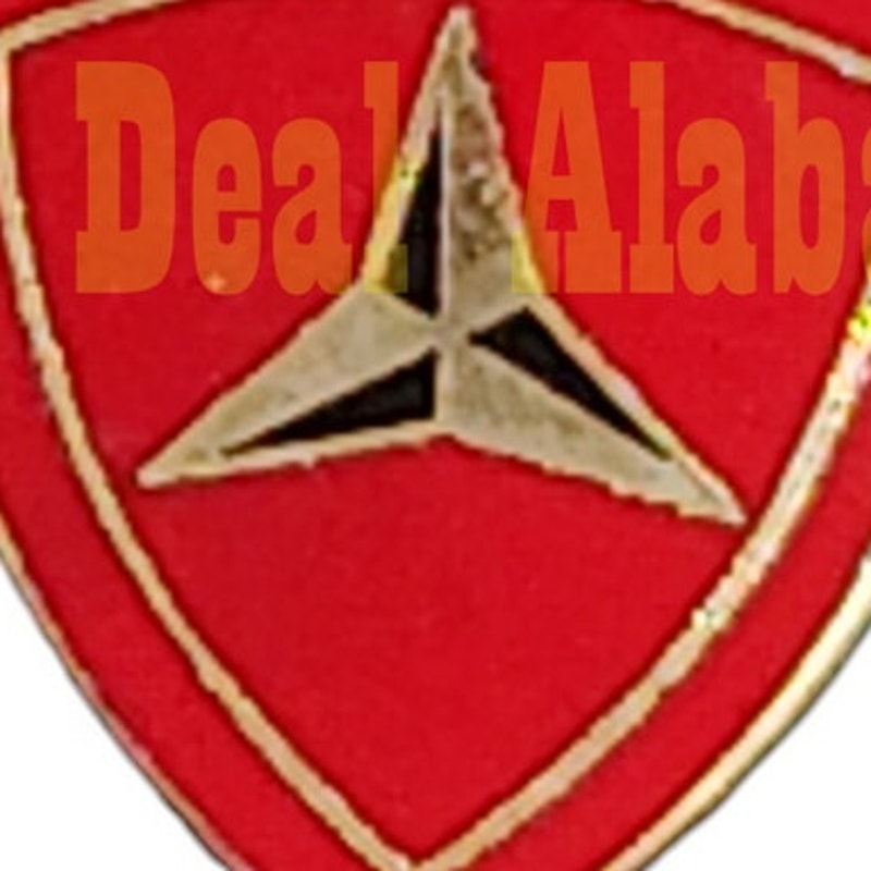 The USMC 3rd Marine Division Hat, Lapel, or Brooch Pin is a compact military insignia honoring the 3rd Marine Division. Measuring 7/8" high by 7/8" wide, this pin features the division's emblem, often displayed in red and gold with the numeral "3" and crossed rifles, symbolizing its distinguished service.