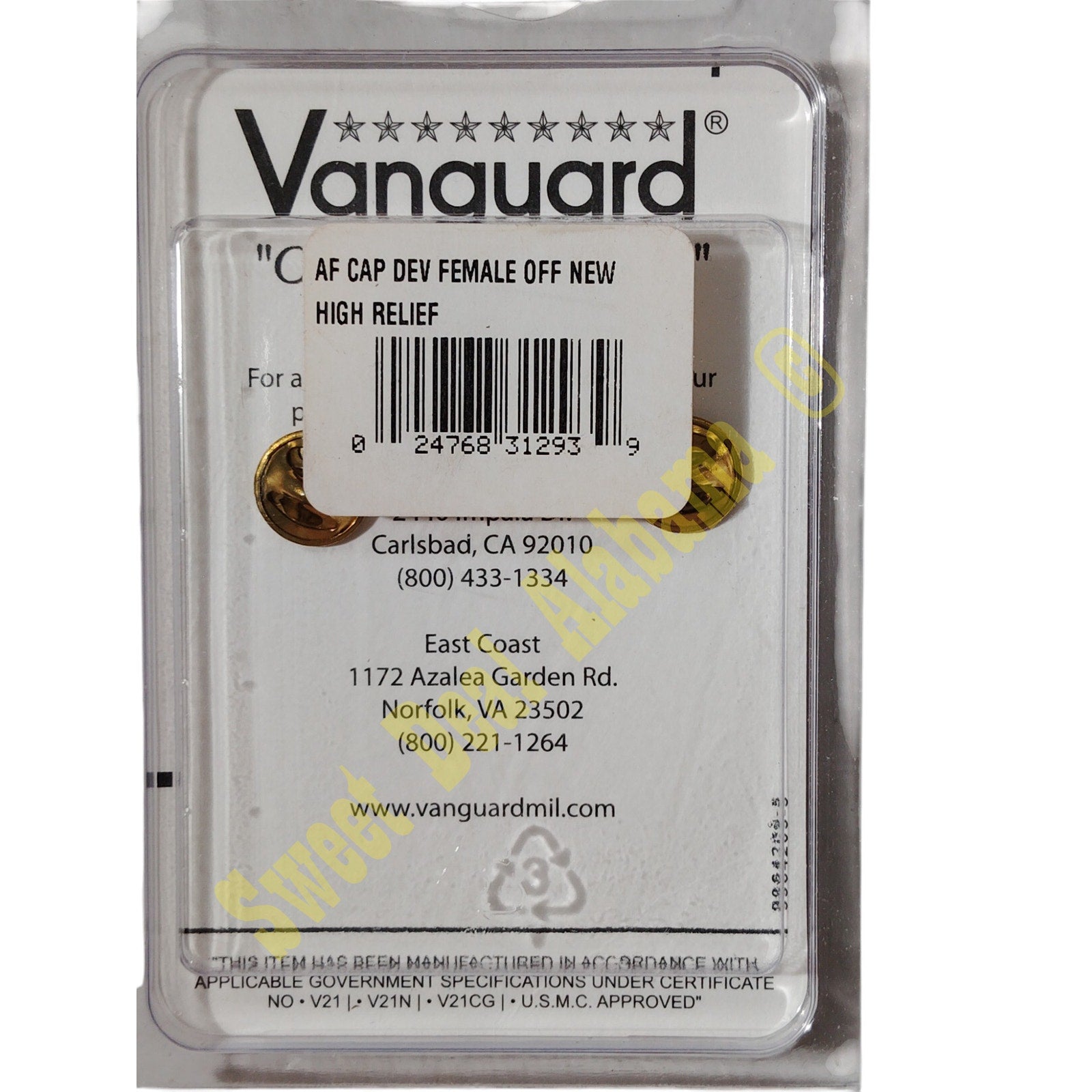 Vanguard USAF Cap Device Pin: High Relief: Officer - Female, 2-1/2"H x 2-1/4"W