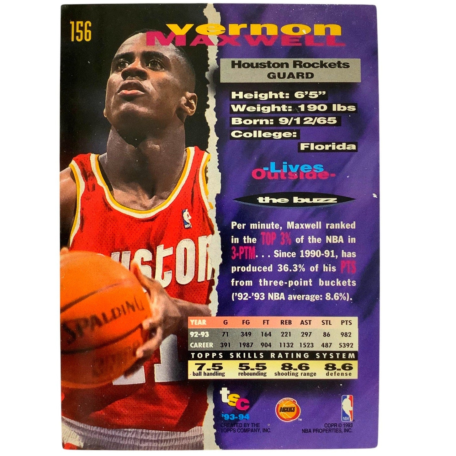 Vernon Maxwell, Rockets, 1993 Topps Stadium Club Collector's Card 156, EXC