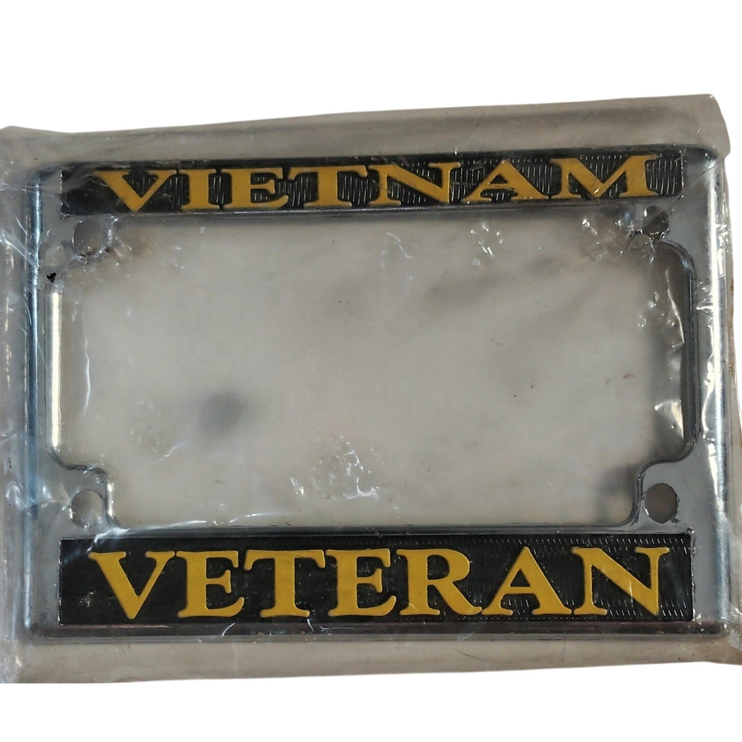 Vietnam Veteran Motorcycle License Plate Frame – Chromed Metal, Yellow Text on Black, Made in USA