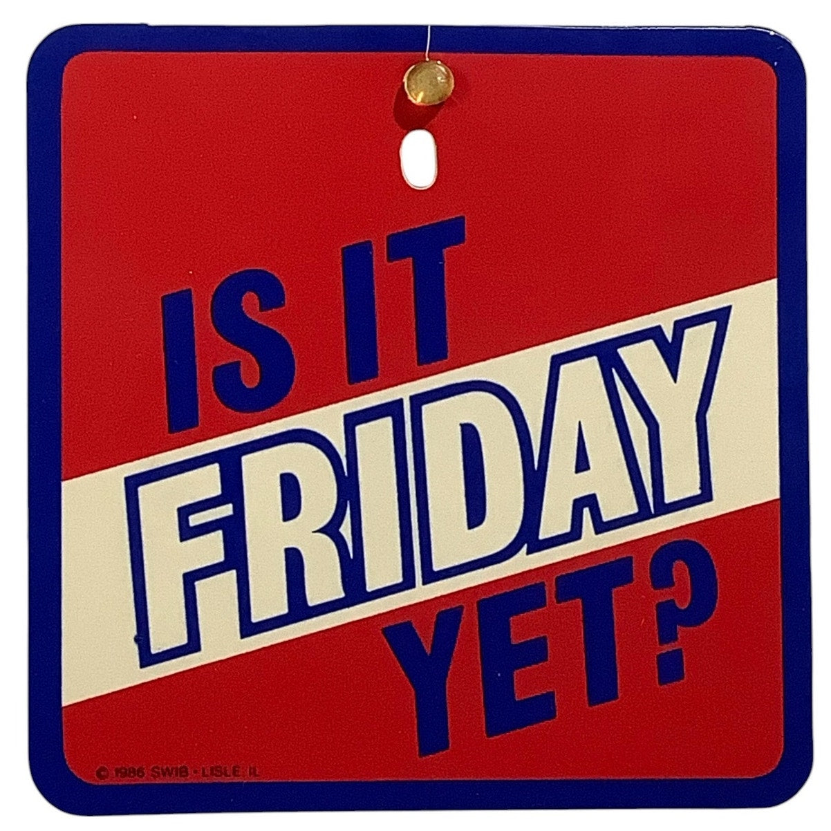Vintage 1986 Window Talk "Is it Friday Yet?" Suction Cup Sign 5" x 5" HD Plastic