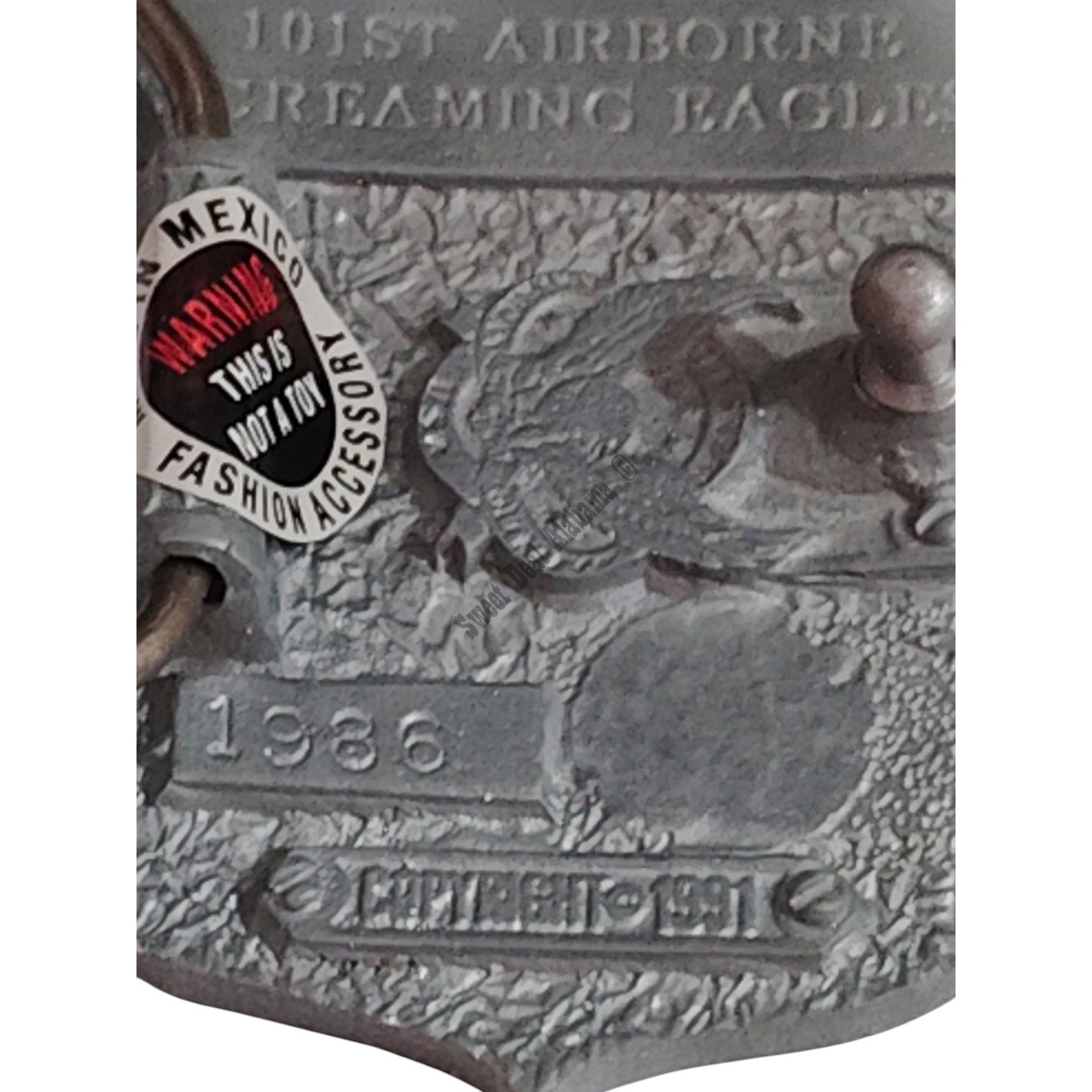 This buckle is a sought-after item among military memorabilia collectors and enthusiasts of the 101st Airborne Division's storied history.
