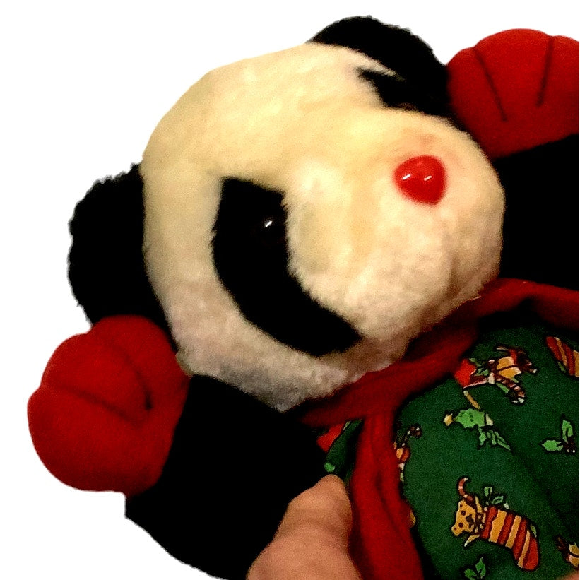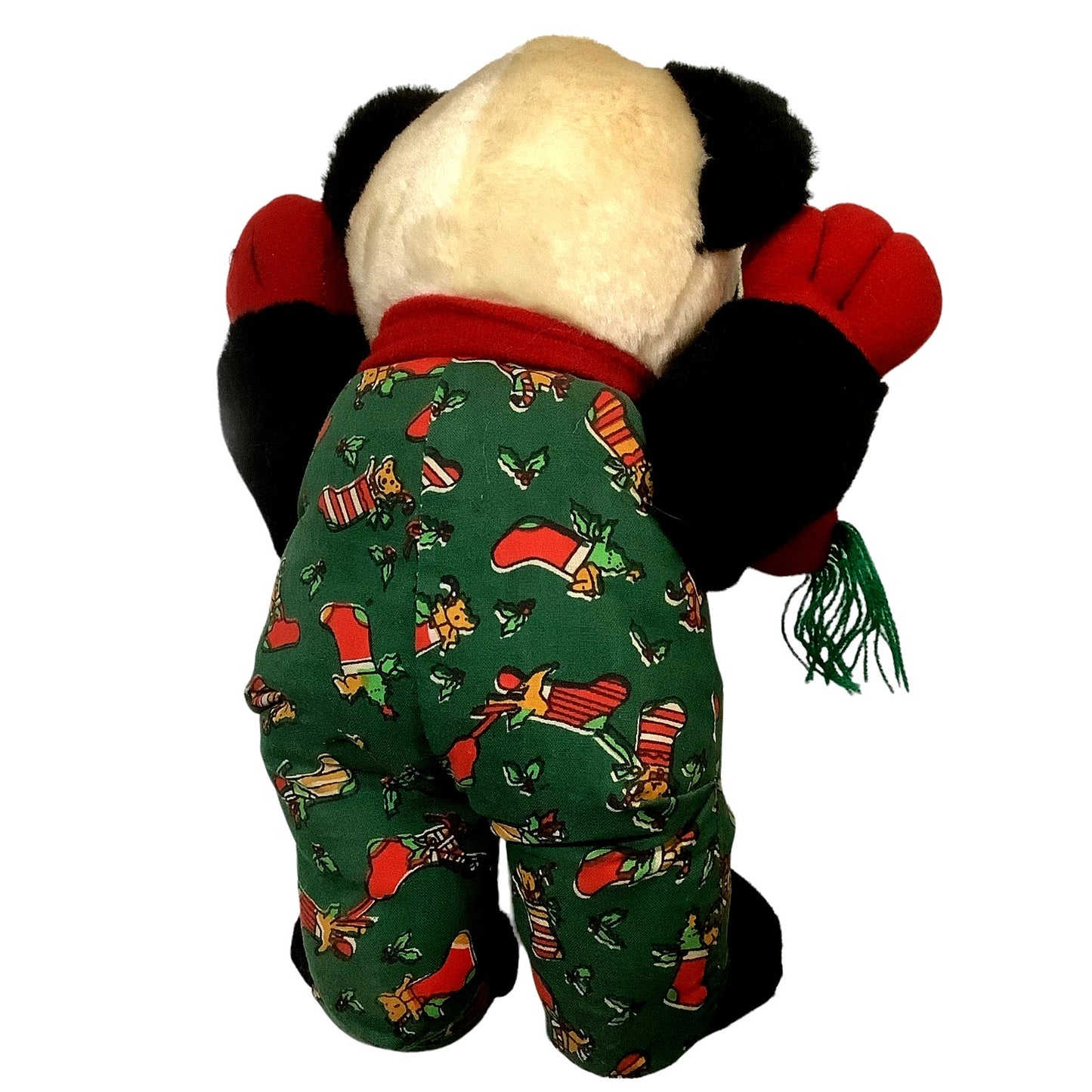 Vintage Christmas Panda 9.5"H w/ Tassled Scarf and Stocking Pajamas Circa 1990's
