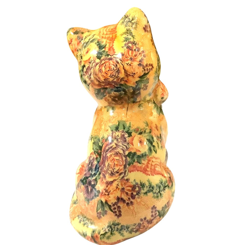 Vintage Floral and Lace Patchwork Designed Cat Figurine by Joan Baker Designs