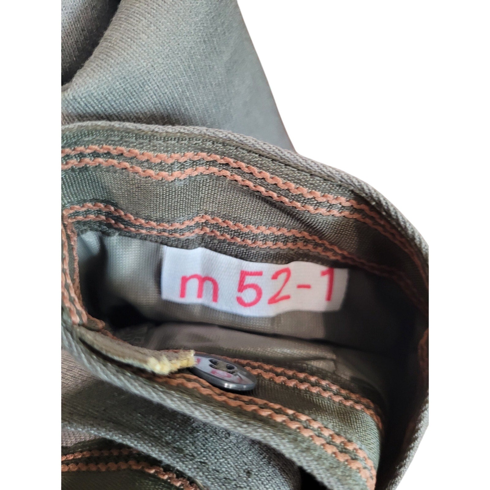 This listing is for a pair of vintage German Army trainer pants, size EU 52-1 (approx. US 42 Short), made in Germany. These trousers are constructed from durable cotton in olive drab green, featuring a button fly, adjustable waist tabs, and a classic military athletic cut. Originally issued for physical training and light field use, they’re now sought after for their comfort, durability, and Cold War–era styling.