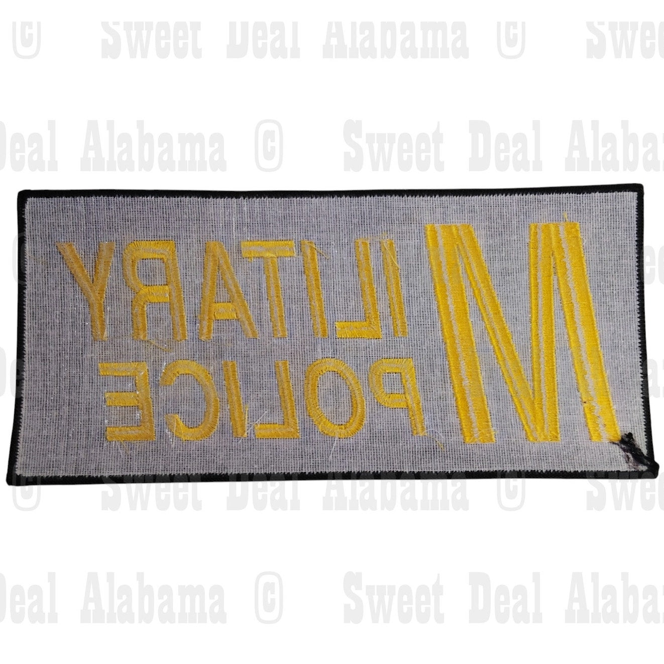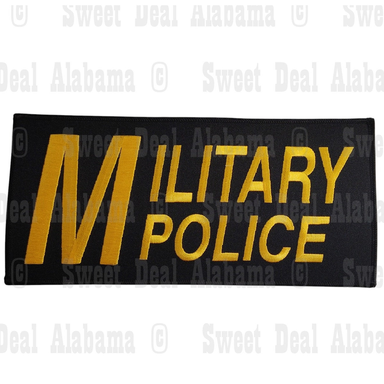 This high-quality embroidered Military Police patch features bold yellow lettering on a black background, making it a clear and authoritative insignia for military personnel and collectors.