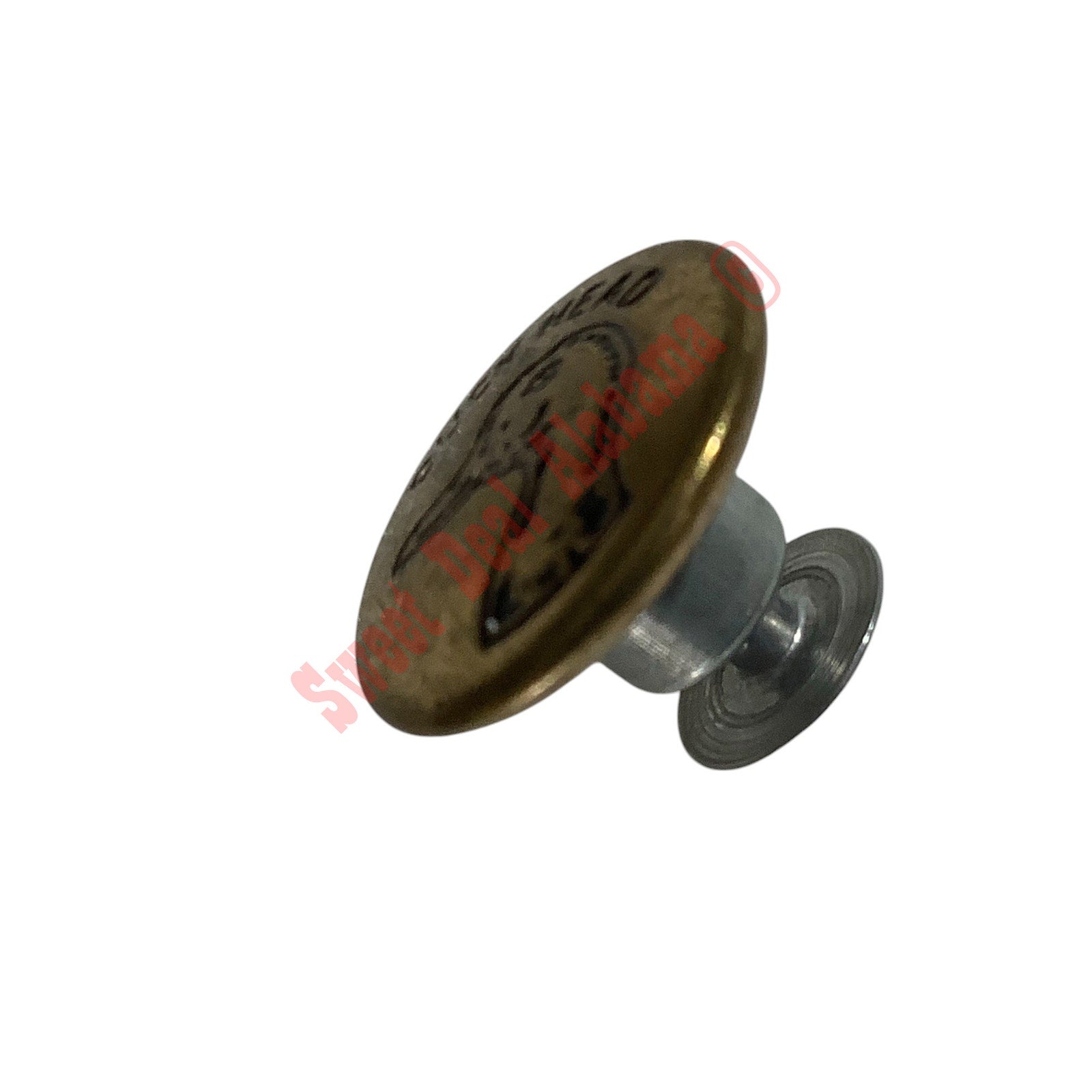 Button Head: Decorative, with embossed branding.