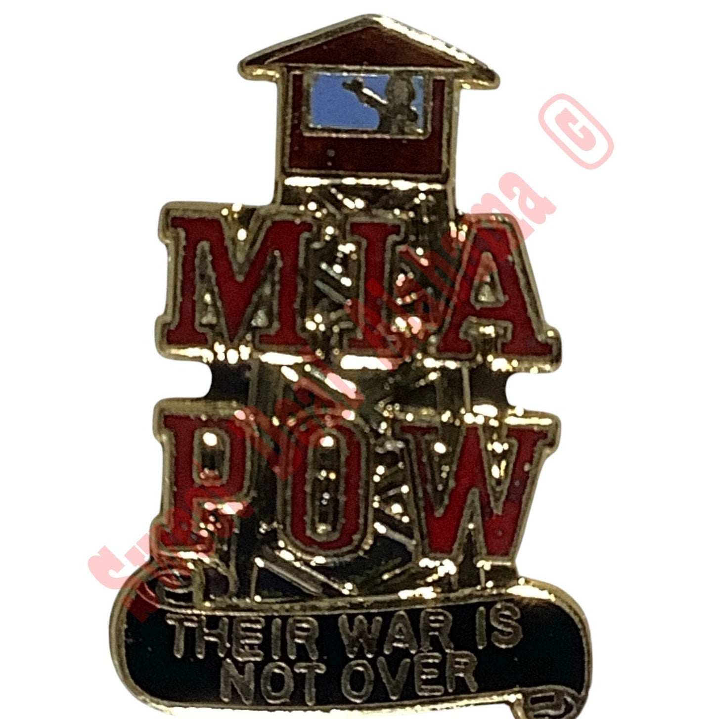 The Vintage POW/MIA "Their War Is Not Over" Hat or Lapel Pin is a meaningful collectible that honors the sacrifices of prisoners of war (POW) and those missing in action (MIA). Here's a detailed description: