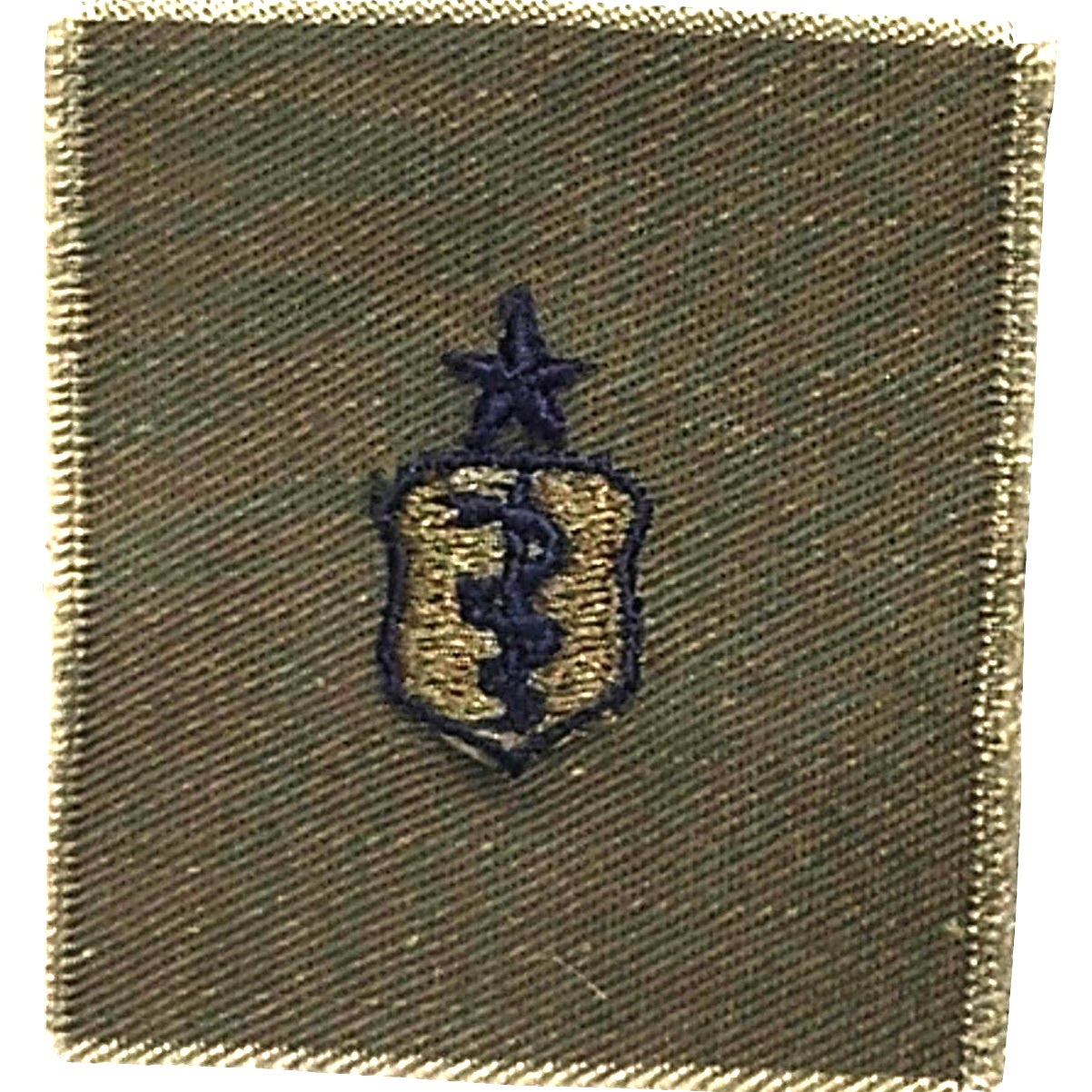 Vintage Senior Medical Device Insignia – 2" x 2" Sew-On Patch, Navy Blue Embroidery on ODG Twill