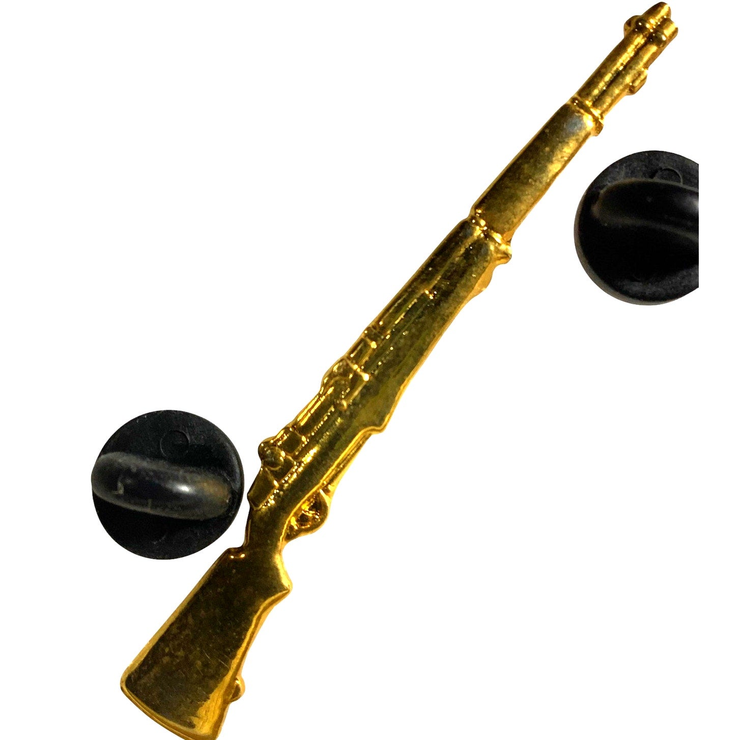 The Vintage Single Bolt Rifle Lapel / Hat Pin is a classic military insignia with the following details: