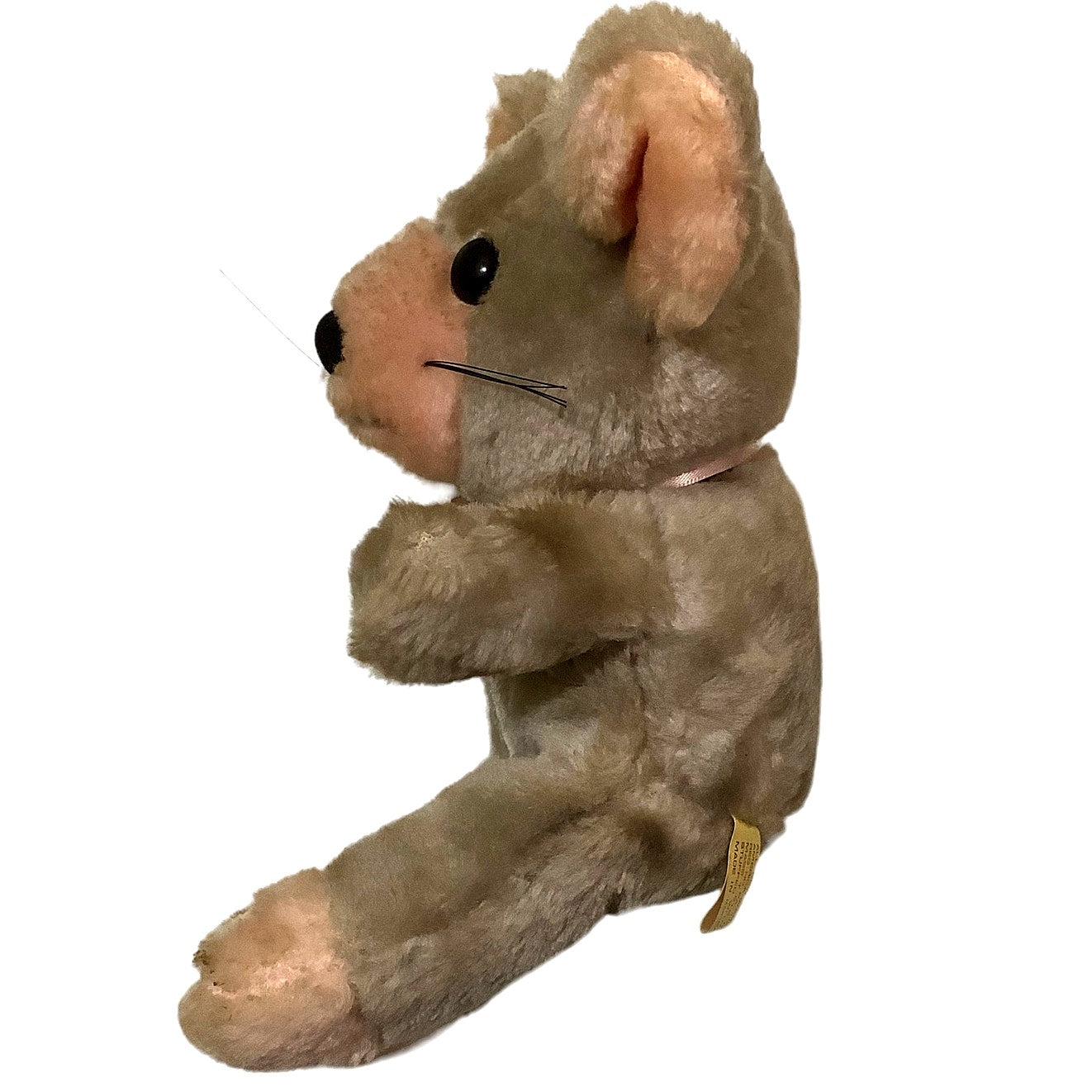 VTG 1968 America Wego 9" Plush Mouse, Gray/Pink in EUC, w/ Whiskers & Ribbon Bow
