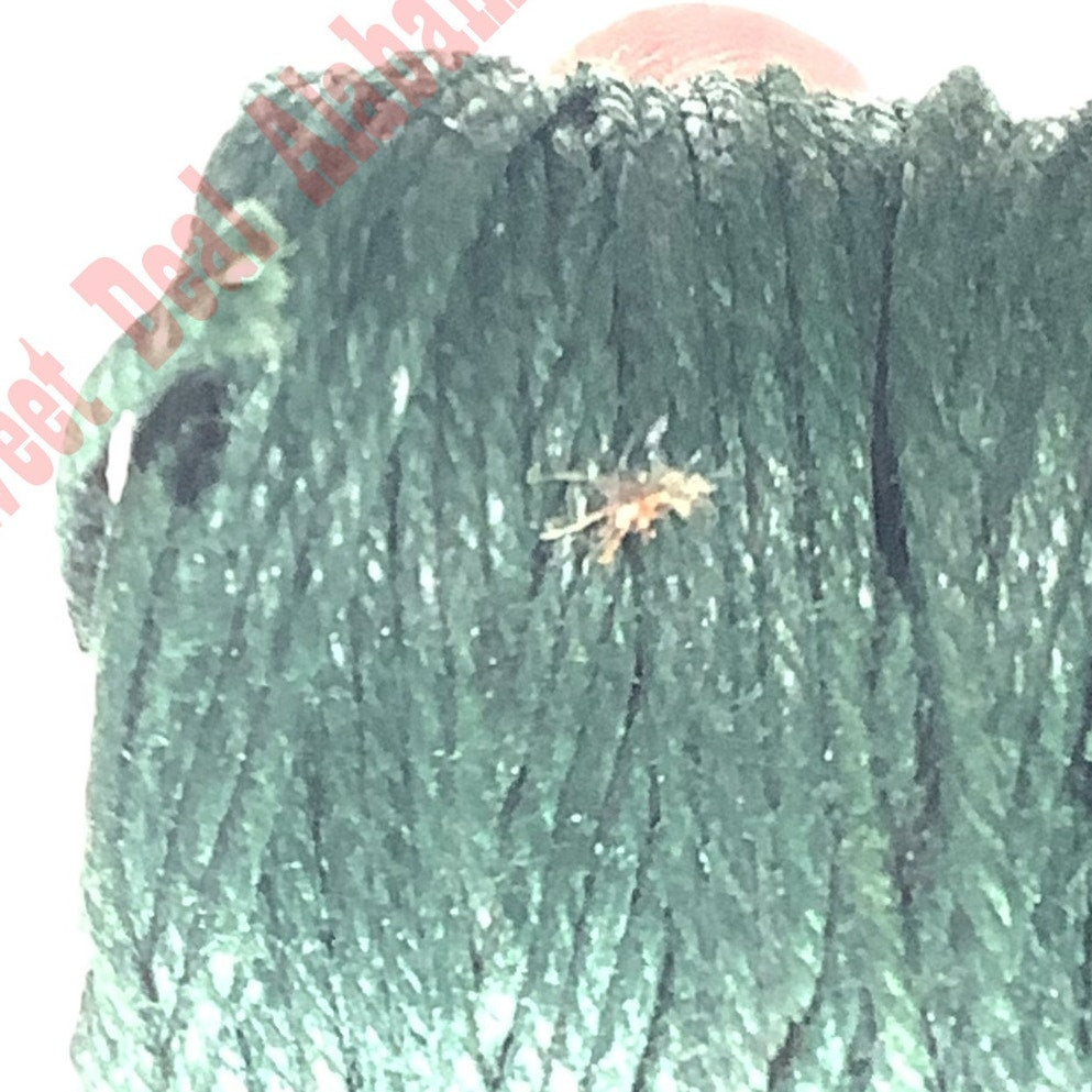 A very Thick Olive Drab Green Military Thread, As close as I can tell, appears to be 1/16" Thickness, with three braids wrapped to 3 x again.
