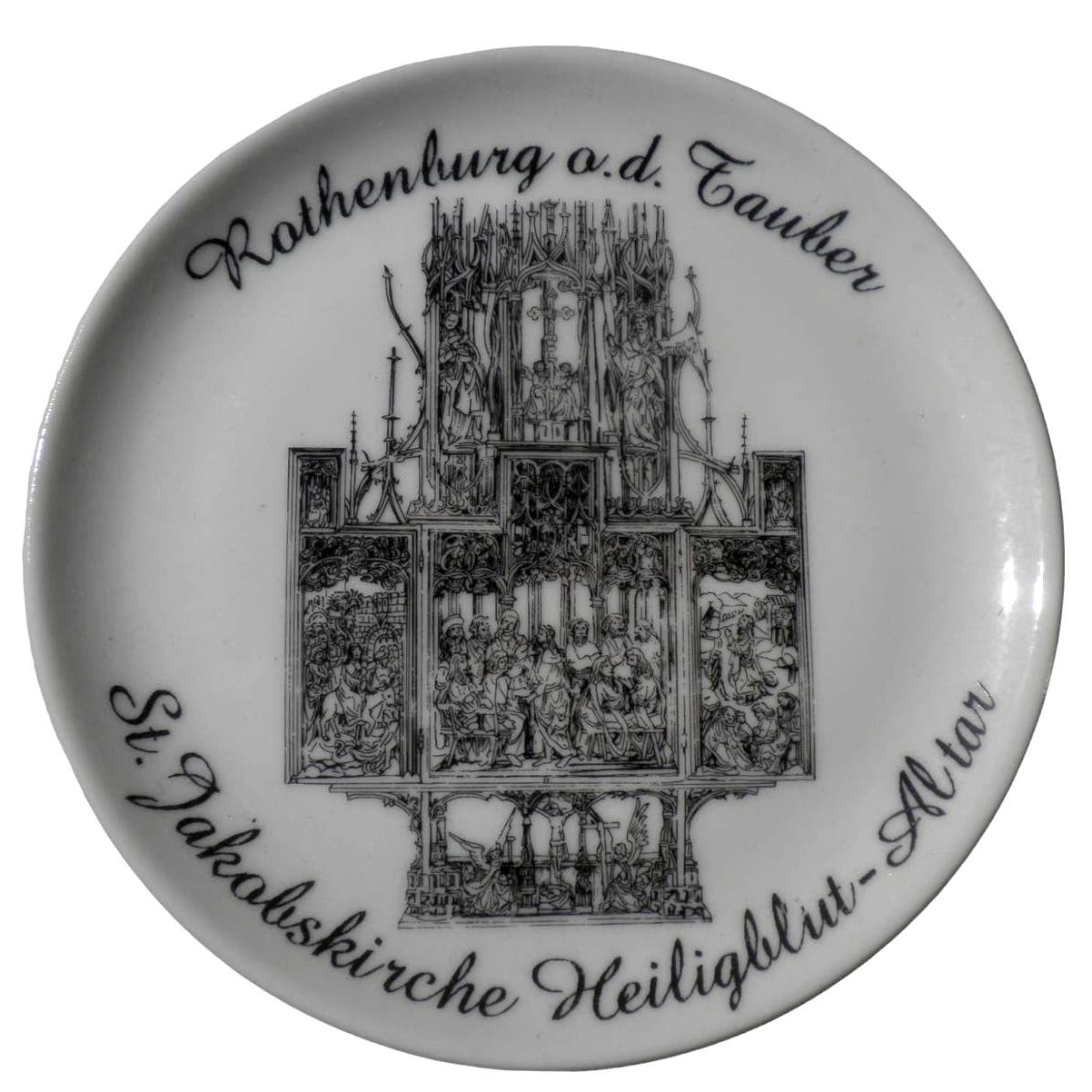 VTG Porcelain Coaster, 3-7/8"D, Rothenburg o.d. Tauber, Holy Blood Altarpiece