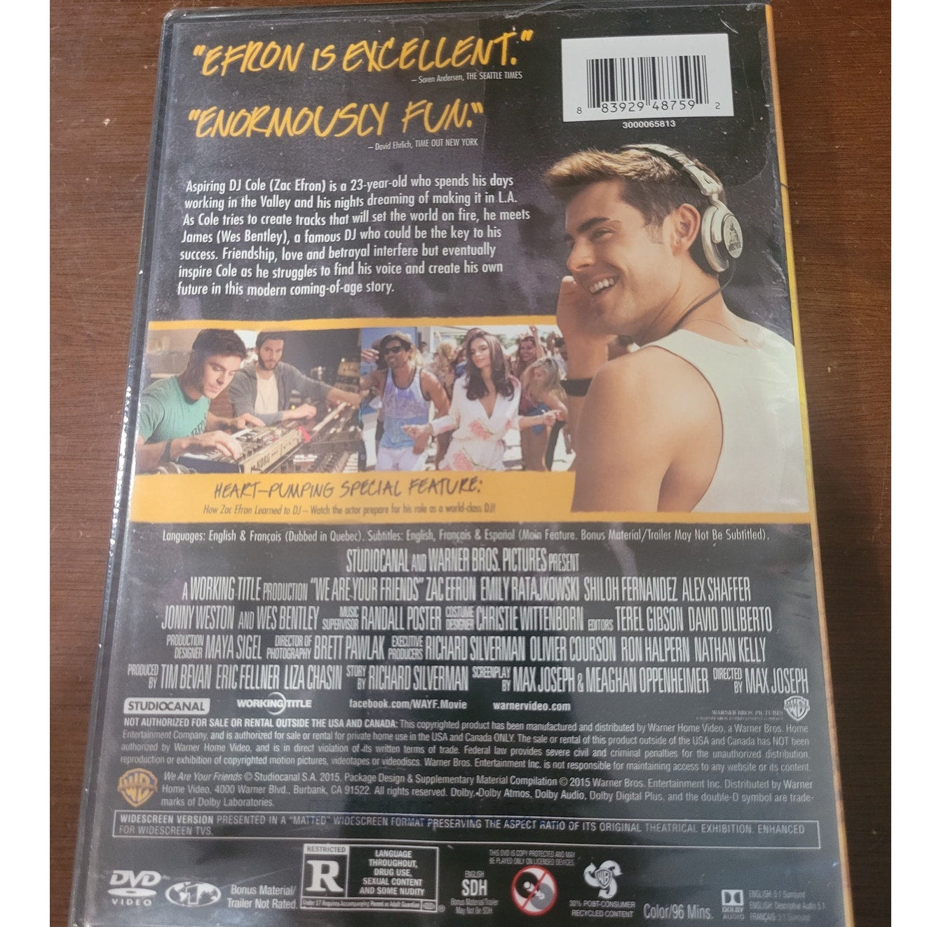We Are Your Friends DVD 2015 Drama Music Romance Zac Efron DJ Club Scene