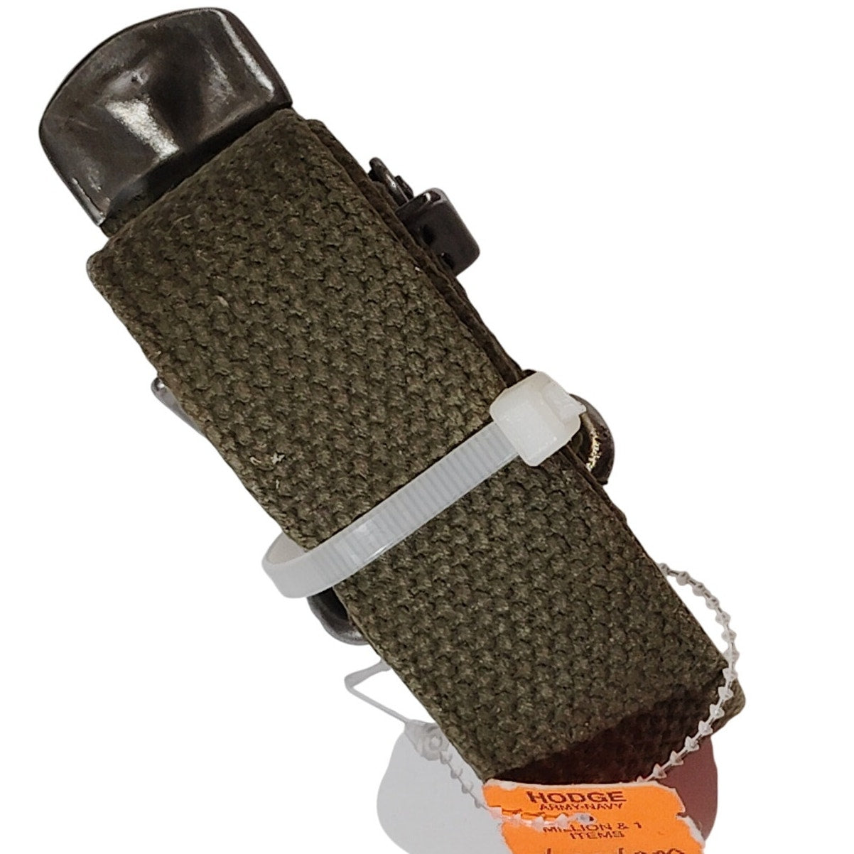 It served during multiple conflicts including World War II, Korea, and Vietnam, and is finished in authentic Olive Drab Green Cotton Webbing.