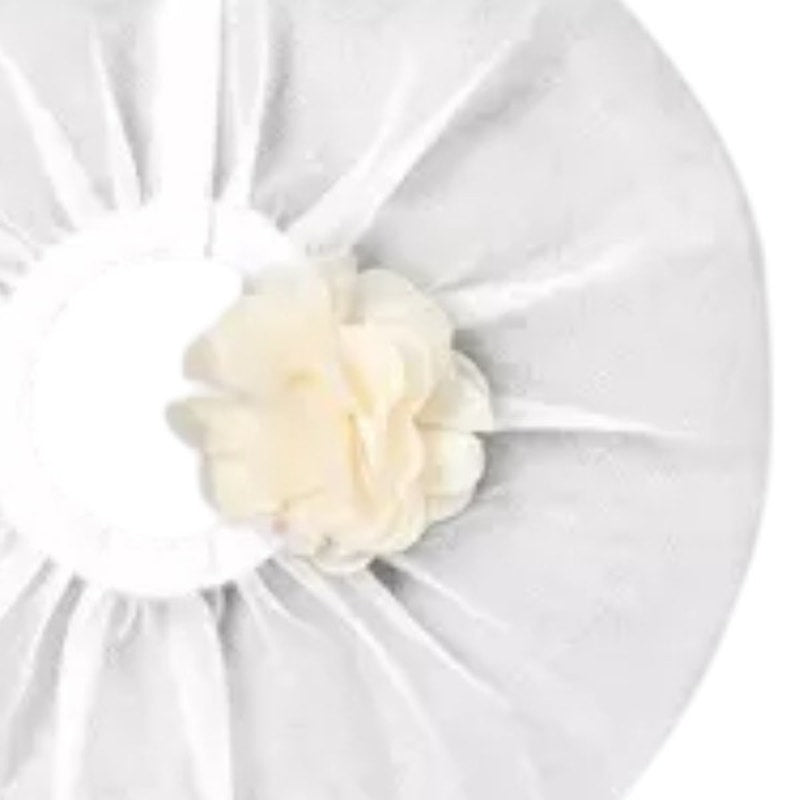 White cat collar ruff from the Boots & Barkley Wedding Collection. Features a hook-and-loop closure and a single cream-colored fabric rosette for elegant flair. UPC 042607807583.